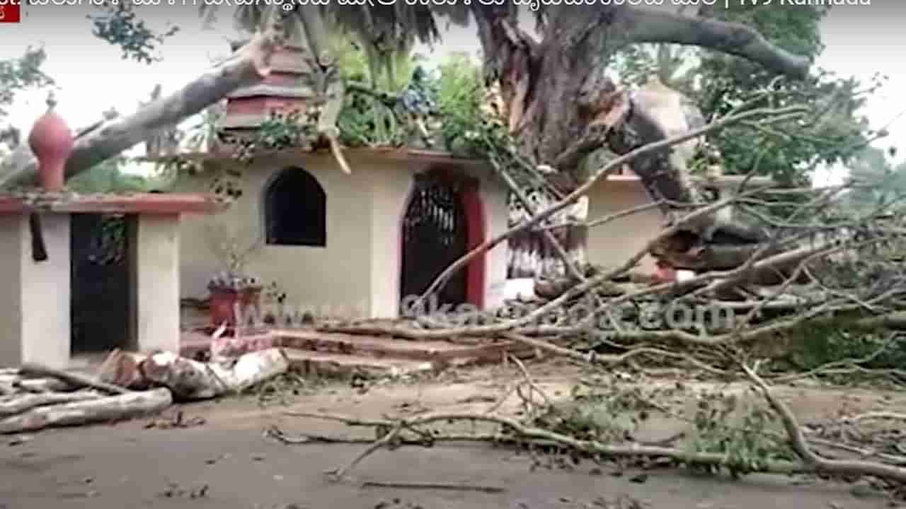 ಮಂಡ್ಯದ ಬೂತನಹೊಸೂರು ಗ್ರಾಮದಲ್ಲಿ ಬೃಹದಾಕಾರದ ಮರವೊಂದು ದೇವಾಸ್ಥಾನದ ಮೇಲೆ ಉರುಳಿಬಿತ್ತು!