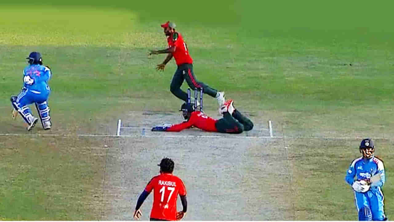 Bangladesh A vs India A, 1st Semi-Final; ಈ ಸುಲಭ ಗುರಿಯನ್ನು ಬೆನ್ನತ್ತಲು ಬಂದ ಬಾಂಗ್ಲಾ ಬ್ಯಾಟರ್ ಯಾಸಿರ್ ಅಲಿ ಮೊದಲ ಎಸೆತದಲ್ಲೇ ಔಟಾಗಿದ್ದರು. ಆದರೆ ಸುಯಶ್ ಶರ್ಮಾ ಎಸೆದ ದ್ವಿತೀಯ ಎಸೆತವು ವೈಡ್ ಆಯಿತು. ಈ ವೈಡ್ ರನ್ನೊಂದಿಗೆ ಗೆದ್ದ ಬಾಂಗ್ಲಾದೇಶ್ ತಂಡವು ರೈಸಿಂಗ್ ಸ್ಟಾರ್ಸ್ ಏಷ್ಯಾಕಪ್ ಟೂರ್ನಿಯಲ್ಲಿ ಫೈನಲ್ಗೇರಿದೆ. ಇತ್ತ ಬಲಿಷ್ಠ ಪಡೆಯಾಗಿ ಗುರುತಿಸಿಕೊಂಡಿದ್ದ ಟೀಮ್ ಇಂಡಿಯಾ ಸೂಪರ್ ಓವರ್ನಲ್ಲಿ ಯಾವುದೇ ರನ್ಗಳಿಸದೇ ಟೂರ್ನಿಯಿಂದಲೇ ಹೊರಬಿದ್ದಿದೆ.