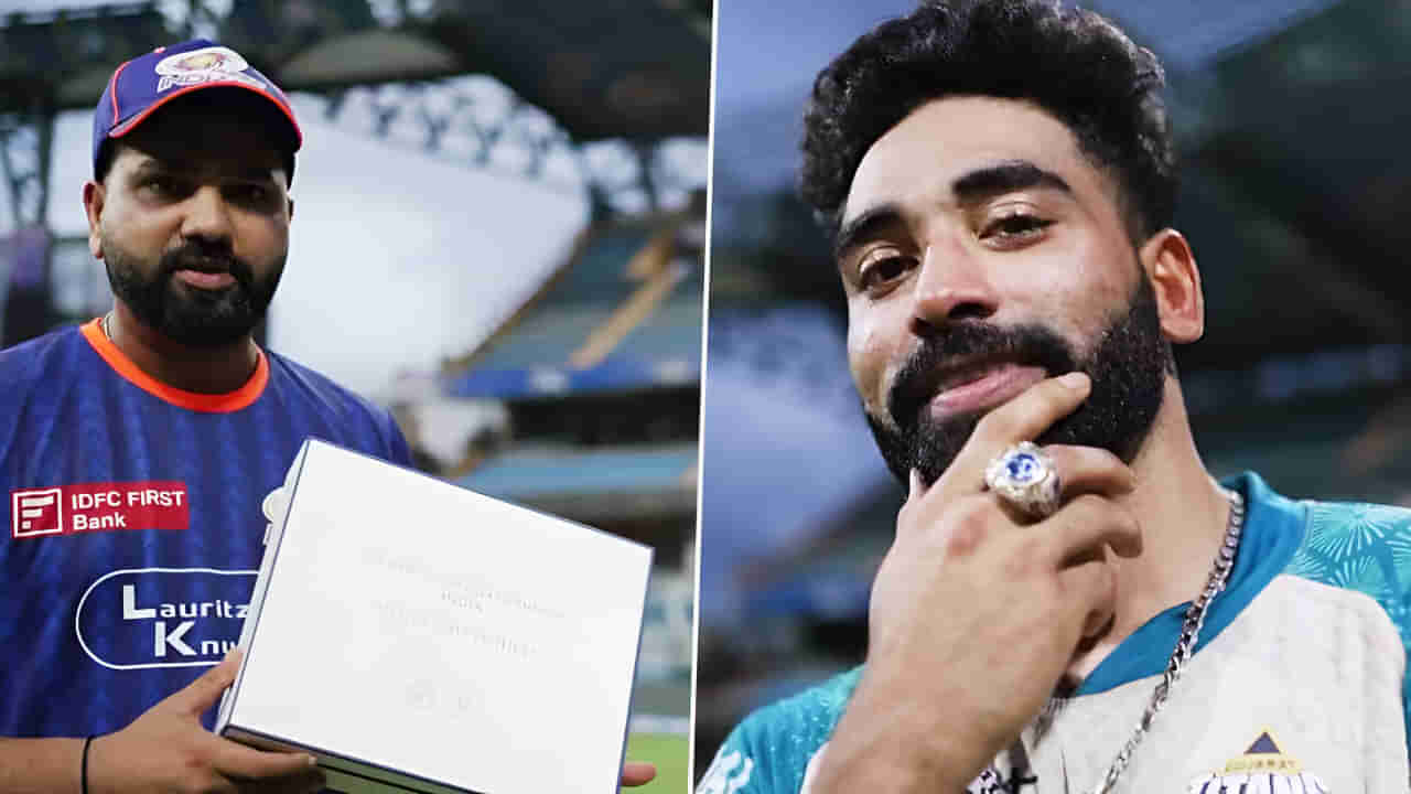 IPL 2025: ಐಪಿಎಲ್ 2025 ರ 56 ನೇ ಪಂದ್ಯವು ಮುಂಬೈ ಇಂಡಿಯನ್ಸ್ (MI) ಮತ್ತು ಗುಜರಾತ್ ಟೈಟಾನ್ಸ್ (GT) ತಂಡಗಳು ಮುಖಾಮುಖಿಯಾಗಲಿವೆ. ಈ ಪಂದ್ಯಕ್ಕೂ ಮುನ್ನ ರೋಹಿತ್ ಶರ್ಮಾ ಟೀಮ್ ಇಂಡಿಯಾ ವೇಗಿ ಮೊಹಮ್ಮದ್ ಸಿರಾಜ್ಗೆ ವಜ್ರದ ಉಂಗುರವನ್ನು ಹಸ್ತಾಂತರಿಸಿದ್ದಾರೆ. 2024ರ ಟಿ20 ವಿಶ್ವಕಪ್ ಗೆದ್ದ ಟೀಮ್ ಇಂಡಿಯಾ ಆಟಗಾರರಿಗೆ ಬಿಸಿಸಿಐ ವಜ್ರದ ಉಂಗುರವನ್ನು ಉಡುಗೊರೆಯಾಗಿ ಘೋಷಿಸಿತ್ತು.