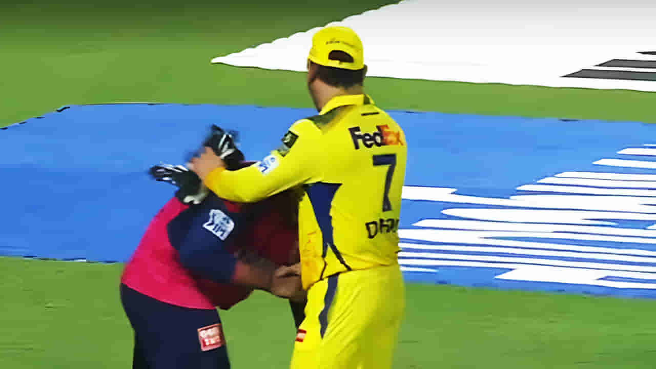 VIDEO: ಧೋನಿಯ ಪಾದಗಳನ್ನು ಮುಟ್ಟಿ ಆಶೀರ್ವಾದ ಪಡೆದ ಯುವ ಆಟಗಾರ