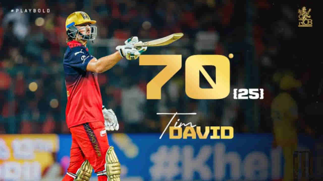 Tim David's Chinnaswamy Carnage: ಬೆಂಗಳೂರಿನ ಚಿನ್ನಸ್ವಾಮಿ ಕ್ರೀಡಾಂಗಣದಲ್ಲಿ ಟಿಮ್ ಡೇವಿಡ್ ಸ್ಫೋಟಕ ಬ್ಯಾಟಿಂಗ್ ಪ್ರದರ್ಶಿಸಿದರು. ಸಿಎಸ್ಕೆ ಬೌಲರ್ಗಳ ಮೇಲೆ ಸಿಕ್ಸರ್ಗಳ ಸುರಿಮಳೆಗೈದ ಡೇವಿಡ್, ಕೇವಲ 25 ಎಸೆತಗಳಲ್ಲಿ 3 ಬೌಂಡರಿ ಮತ್ತು 8 ಭರ್ಜರಿ ಸಿಕ್ಸರ್ಗಳೊಂದಿಗೆ 70 ರನ್ ಚಚ್ಚಿದರು. ಅವರ ಬಿರುಸಿನ ಆಟಕ್ಕೆ ಸಿಎಸ್ಕೆ ಬೌಲರ್ಗಳು ದಿಕ್ಕೆಗೆಟ್ಟು ನಿಂತರು, ಮೈದಾನದಲ್ಲಿ ಸಿಕ್ಸರ್ಗಳನ್ನು ವಿಸ್ಮಿತರಾಗಿ ನೋಡಬೇಕಾಯಿತು.