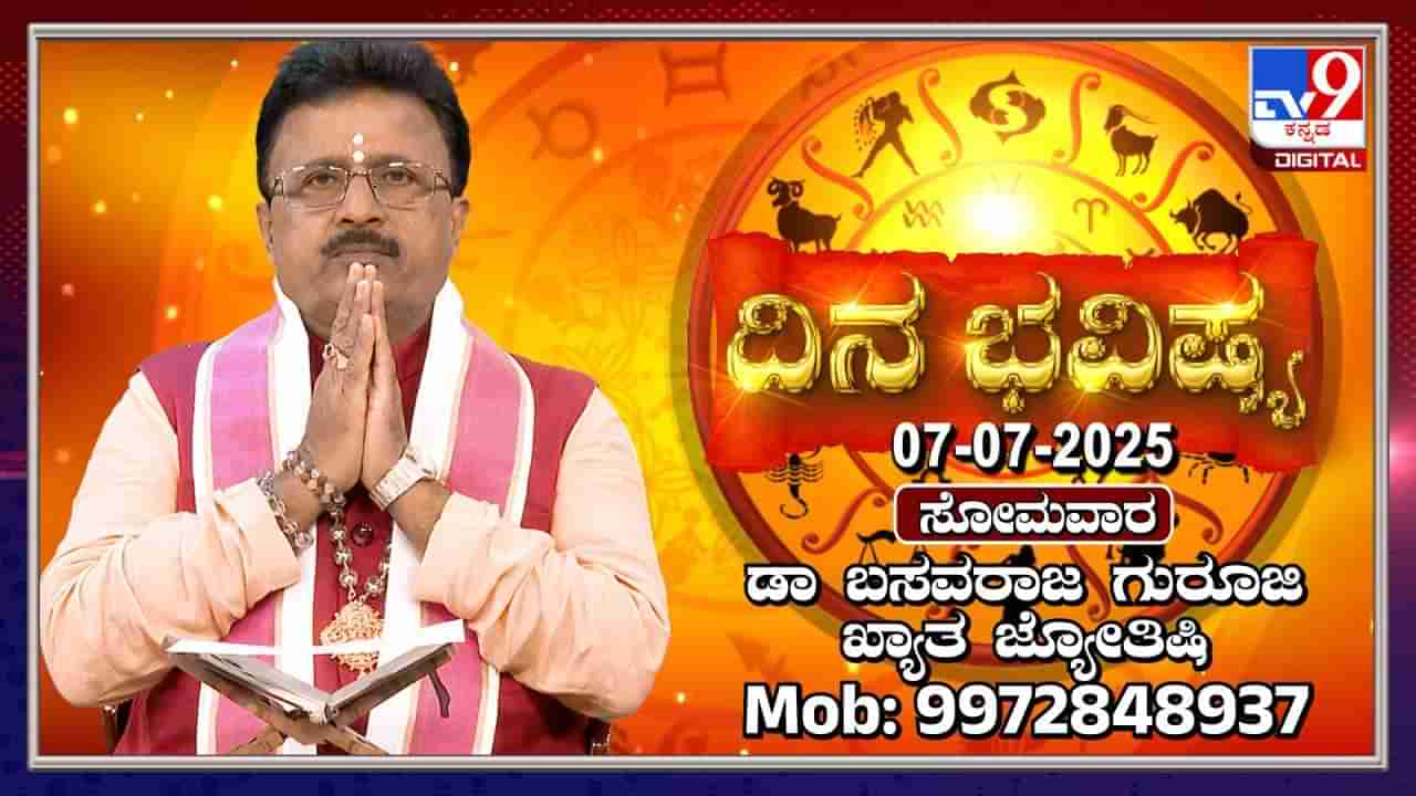 ಜುಲೈ 7 ದಿನ ಭವಿಷ್ಯ ಡಾ. ಬಸವರಾಜ ಗುರೂಜಿ ಅವರು ವಿವರಿಸಿದ್ದಾರೆ. ಮೇಷ, ವೃಷಭ, ಮಿಥುನ ಮತ್ತು ಕರ್ಕಾಟಕ ರಾಶಿಗಳಿಗೆ ಆರ್ಥಿಕ ಲಾಭ, ಉದ್ಯೋಗದಲ್ಲಿ ಪ್ರಗತಿ ಮತ್ತು ಕುಟುಂಬದಲ್ಲಿ ಸುಖ ಶಾಂತಿ ಇರುವ ಬಗ್ಗೆ ತಿಳಿಸಲಾಗಿದೆ. ಪ್ರತಿ ರಾಶಿಗೂ ಅದೃಷ್ಟ ಸಂಖ್ಯೆ ಮತ್ತು ಶುಭ ದಿಕ್ಕನ್ನು ಸಹ ತಿಳಿಸಲಾಗಿದೆ.