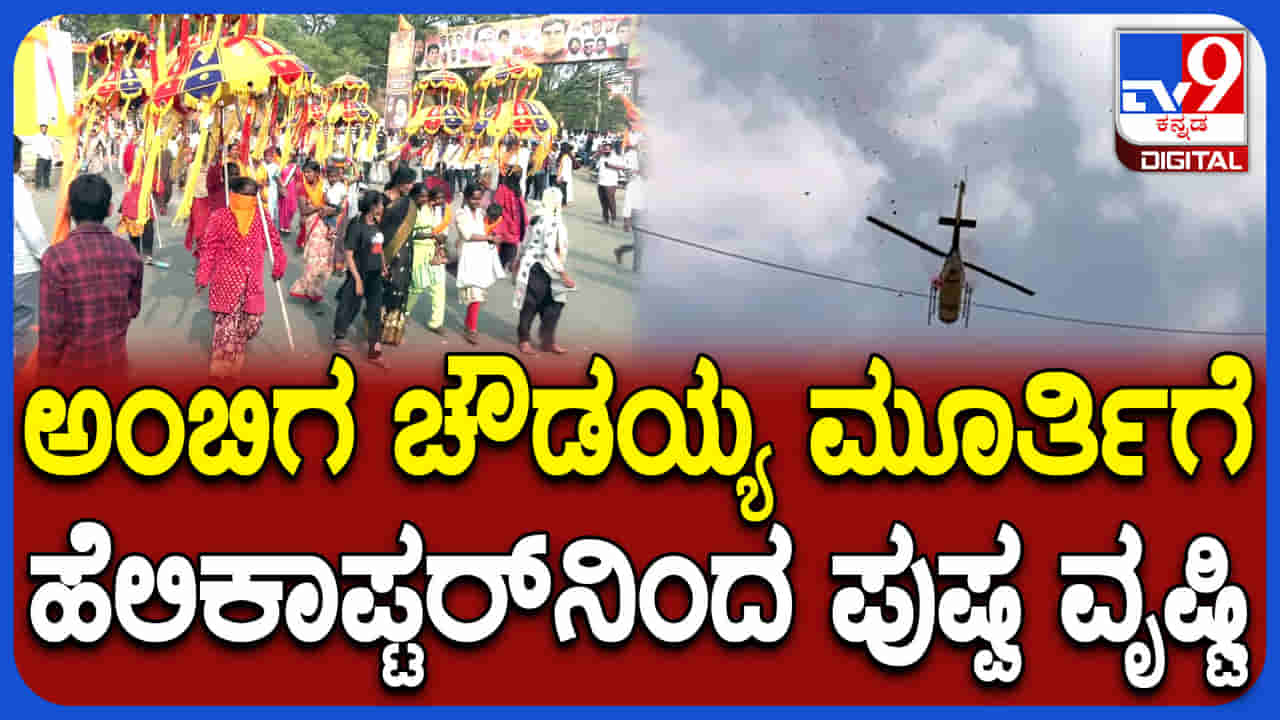 ಅಂಬಿಗರ ಚೌಡಯ್ಯ ಭವ್ಯ ಮೆರವಣಿಗೆಗೆ ಹೆಲಿಕಾಪ್ಟರ್ನಿಂದ ಪುಷ್ಪವೃಷ್ಟಿ