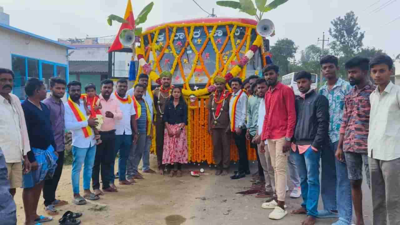 ಕೋಲಾರ ಜಿಲ್ಲೆಯ ಯಾರಂಘಟ್ಟ ಗ್ರಾಮಸ್ಥರು ಕನ್ನಡ ರಾಜ್ಯೋತ್ಸವವನ್ನು ಅದ್ದೂರಿಯಾಗಿ ಆಚರಿಸಿದ್ದಾರೆ. ಗ್ರಾಮಕ್ಕೆ ನಿತ್ಯ ಸೇವೆ ಸಲ್ಲಿಸುವ ಸರ್ಕಾರಿ ಬಸ್ಗೆ ಕನ್ನಡ ಬಾವುಟ ಕಟ್ಟಿ, ಹೂವಿನಿಂದ ಅಲಂಕರಿಸಿ ಸಂಭ್ರಮಿಸಿದ್ದಾರೆ. ಗ್ರಾಮಸ್ಥರು ಮತ್ತು ವಿದ್ಯಾರ್ಥಿಗಳು ಸೇರಿ ನಿತ್ಯ ಪ್ರಯಾಣಿಕರನ್ನು ಸುರಕ್ಷಿತವಾಗಿ ಕರೆದೊಯ್ಯುವ ಚಾಲಕ ಮತ್ತು ನಿರ್ವಾಹಕರನ್ನು ಸನ್ಮಾನಿಸಿ ಗೌರವಿಸಿದ್ದಾರೆ. ಈ ಮೂಲಕ ಕನ್ನಡ ಪ್ರೀತಿ ಮತ್ತು ಸಾರ್ವಜನಿಕ ಸೇವೆಗೆ ಮೆಚ್ಚುಗೆ ವ್ಯಕ್ತಪಡಿಸಿದ್ದಾರೆ. ಕೆಂಪು ಹಳದಿ ಹೂವು ಮತ್ತು ಕರ್ನಾಟಕ ಬಾವುಟಗಳಿಂದ ಶೃಂಗರಿಸಿದ ಸರ್ಕಾರಿ ಬಸ್ಸಿನ ದೃಶ್ಯಾವಳಿಗಳು ಇಲ್ಲಿವೆ.