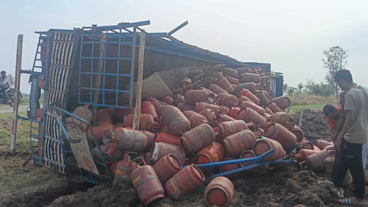 ರಾಜ್ಯದಲ್ಲಿ ಗ್ಯಾಸ್ ಸಮಸ್ಯೆ ಮಧ್ಯೆ ಆಘಾತ! ಸಿಲಿಂಡರ್​ ಸಾಗಿಸ್ತಿದ್ದ ಲಾರಿ ಪಲ್ಟಿ