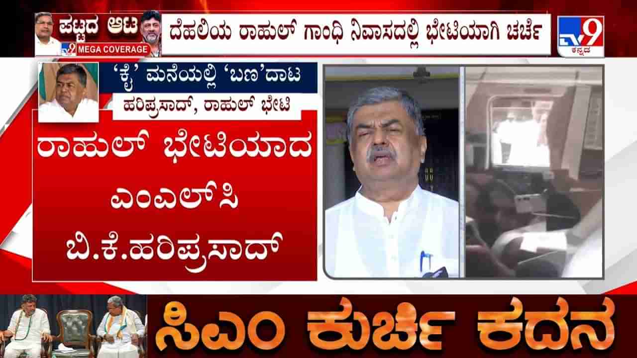 ಕರ್ನಾಟಕ ಸಿಎಂ ಕುರ್ಚಿ ಕದನ ಸಂಬಂಧ ದೆಹಲಿಯಲ್ಲಿ ಬಿರುಸಿನ ರಾಜಕೀಯ ಚಟುವಟಿಕೆಗಳು ನಡೆಯುತ್ತಿವೆ. ಡಿಕೆ ಶಿವಕುಮಾರ್ ಬಣದ ಶಾಸಕರು ದೆಹಲಿಯಲ್ಲೇ ಬೀಡುಬಿಟ್ಟಿದ್ದು, ಡಿಕೆಶಿ ಸಿಎಂ ಸ್ಥಾನ ಕೊಡಬೇಕೆಂದು ಹೈಕಮಾಂಡ್ ಮುಂದೆ ಪ್ರಸ್ತಾಪಿಸಲು ಕಸತ್ತು ನಡೆಸಿದ್ದಾರೆ. ಇದರ ನಡುವೆ ವಿಧಾನಪರಿಷತ್ ಸದಸ್ಯ ಬಿಕೆ ಹರಿಪ್ರಸಾದ್, ಲೋಕಸಭೆ ವಿರೋಧ ಪಕ್ಷದ ನಾಯಕ ರಾಹುಲ್ ಗಾಂಧಿ ಅವರನ್ನು ಭೇಟಿಯಾಗಿದ್ದು, ರಾಜ್ಯದ ರಾಜಕೀಯ ಪರಿಸ್ಥಿತಿ ಬಗ್ಗೆ ವರದಿ ಸಲ್ಲಿಸಿದ್ದಾರೆ.