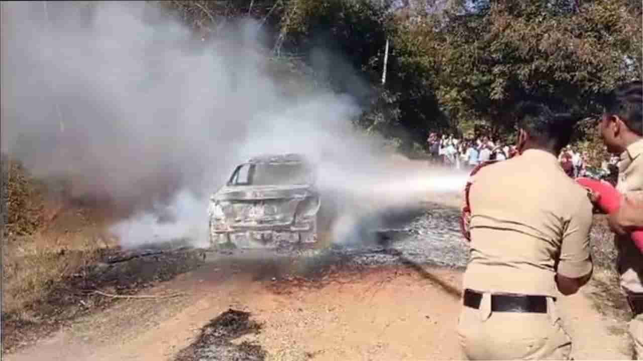 ಚಲಿಸುತ್ತಿದ್ದ ಕಾರಿನಲ್ಲಿ ಆಕಸ್ಮಿಕ ಬೆಂಕಿ: ಐವರು ಪ್ರಾಣಾಪಾಯದಿಂದ ಪಾರು