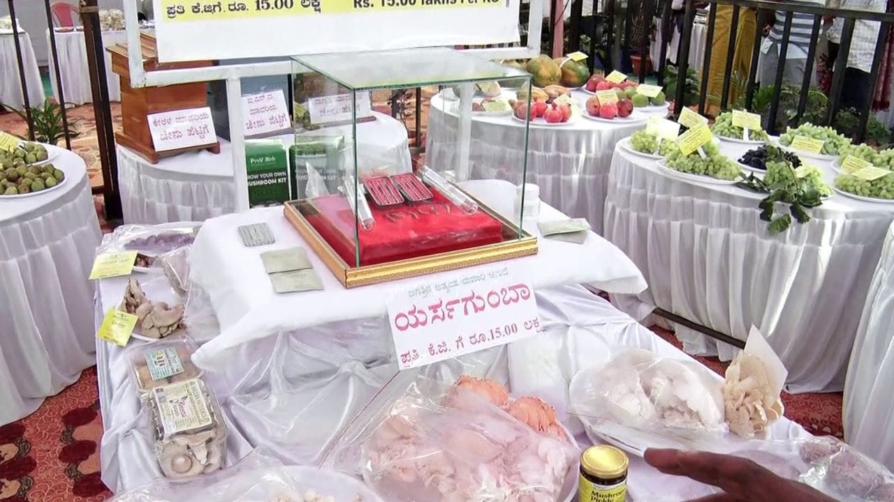 ಕೊಪ್ಪಳದಲ್ಲಿ ಮಹಾ ಶಿವರಾತ್ರಿ ಅಂಗವಾಗಿ ನಡೆದ ಹಣ್ಣು, ಜೇನು ಹಾಗೂ ಅಣಬೆ ಮೇಳದಲ್ಲಿ ಹಿಮಾಲಯದ ಯಾರ್ಸಗುಂಬಾ ಅಣಬೆ ಪ್ರಮುಖ ಆಕರ್ಷಣೆಯಾಗಿತ್ತು. ಪ್ರತಿ ಕೆ.ಜಿ.ಗೆ 15 ಲಕ್ಷ ಬೆಲೆ ಬಾಳುವ ಈ ದುಬಾರಿ ಅಣಬೆ ಕ್ಯಾನ್ಸರ್, ಮಧುಮೇಹ ಸೇರಿದಂತೆ ಹಲವು ಕಾಯಿಲೆಗಳಿಗೆ ಔಷಧೀಯ ಗುಣಗಳನ್ನು ಹೊಂದಿದೆ ಎನ್ನಲಾಗಿದೆ. ಇದನ್ನು ನೇಪಾಳದಿಂದ ತಂದು ಪ್ರದರ್ಶಿಸಲಾಗಿದೆ.