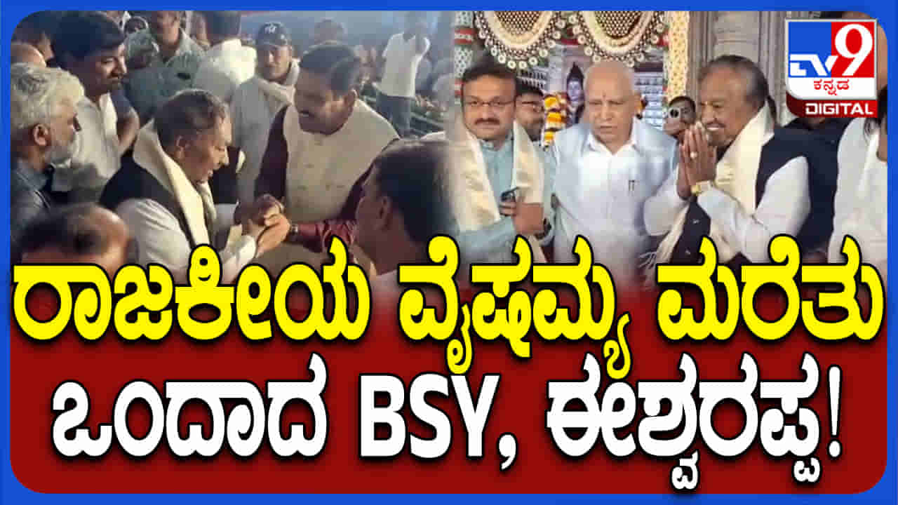 ರಾಜಕೀಯ ವೈಷಮ್ಯ ಮರೆತು ಒಂದಾದ ಬಿಎಸ್ ವೈ-ಈಶ್ವರಪ್ಪ, ವಿಡಿಯೋ ನೋಡಿ