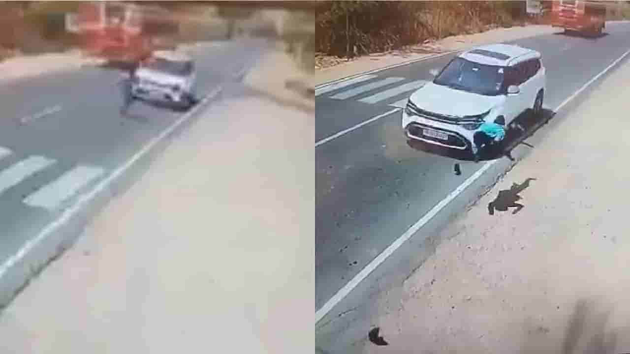 ರಸ್ತೆ ದಾಟುತ್ತಿದ್ದಾಗ ವೇಗವಾಗಿ ಬಂದ ಫಾರ್ಚೂನರ್ ಕಾರು ಡಿಕ್ಕಿ ಹೊಡೆದು ಹಾರಿ ಬಿದ್ದ ಯುವಕ