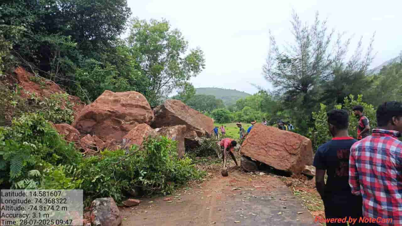 ಕಾರವಾರ, ಜುಲೈ 28: ಕರಾವಳಿ ಭಾಗದಲ್ಲಿ ಮಳೆ ಕಡಿಮೆಯಾದರೂ ಭೂಕುಸಿತ ಮಾತ್ರ ನಿಲ್ಲುತ್ತಿಲ್ಲ. ಉತ್ತರ ಕನ್ನಡ ಜಿಲ್ಲೆಯ ಕುಮಟಾ ತಾಲೂಕಿನ ಕತಗಾಲ ಗ್ರಾಮದ ಬಳಿಯ ದೇವಿಮನೆ ಘಟ್ಟ ಭಾಗ ರಾಷ್ಟ್ರೀಯ ಹೆದ್ದಾರಿ 766 (ಇ) ಮೇಲೆ ಕುಸಿದು ಬಿದ್ದಿದೆ. ಗುಡ್ಡ ಕುಸಿತಗೊಂಡ ಹಿನ್ನೆಲೆಯಲ್ಲಿ ವಾಹನಗಳಿಗೆ ಏಕಮುಖ ಸಂಚಾರಕ್ಕೆ ಮಾತ್ರ ಅವಕಾಶ ನೀಡಲಾಗಿದೆ. ಗುಡ್ಡ ಕಳೆದ ಎರಡು ದಿನಗಳಿಂದ ನಿರಂತರವಾಗಿ ಕುಸಿಯುತ್ತಿದೆ. ಇನ್ನು, ಚಿಕ್ಕಮಗಳೂರು-ಶೃಂಗೇರಿ ರಾಜ್ಯ ಹೆದ್ದಾರಿ ಮೇಲೂ ಭೂಕುಸಿತವಾಗಿದೆ. ಭಾರಿ ಪ್ರಮಾಣದ ಮಣ್ಣು, ಕಲ್ಲು ಬಂಡೆಗಳು ರಸ್ತೆಗೆ ಅಡ್ಡಲಾಗಿ ಬಿದ್ದಿವೆ.