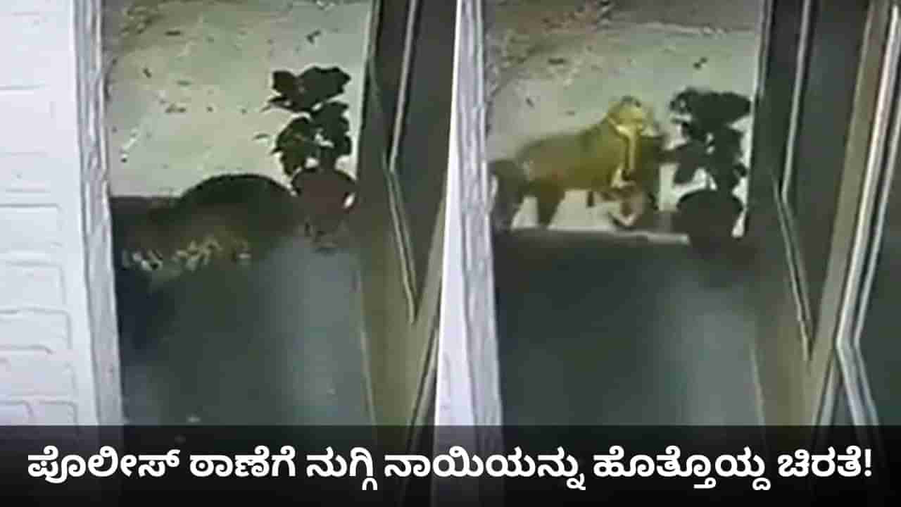 ಪೊಲೀಸ್ ಠಾಣೆಗೆ ನುಗ್ಗಿ ನಾಯಿಯನ್ನು ಹೊತ್ತೊಯ್ದ ಚಿರತೆ!