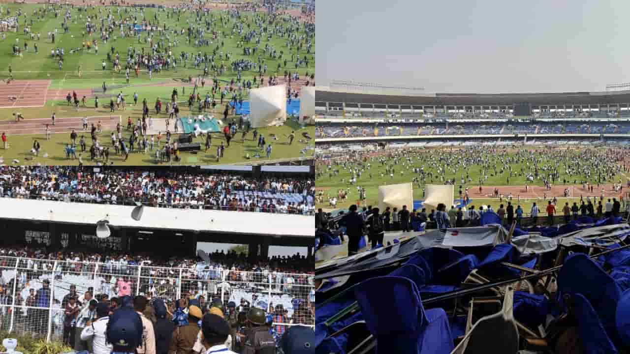 Lionel Messi's India Trip: ಲಿಯೋನೆಲ್ ಮೆಸ್ಸಿ 3 ದಿನಗಳ ಭಾರತ ಪ್ರವಾಸಕ್ಕಾಗಿ ಕೋಲ್ಕತ್ತಾಕ್ಕೆ ಆಗಮಿಸಿ, ಸಾಲ್ಟ್ ಲೇಕ್ ಕ್ರೀಡಾಂಗಣಕ್ಕೆ ಭೇಟಿ ನೀಡಿದರು. ಆದರೆ ಕೇವಲ 10 ನಿಮಿಷಗಳಲ್ಲೇ ನಿರ್ಗಮಿಸಿದ್ದರಿಂದ, ಭಾರಿ ಮೊತ್ತ ನೀಡಿ ಬಂದಿದ್ದ ಅಭಿಮಾನಿಗಳು ತೀವ್ರ ಹತಾಶೆಗೊಂಡರು. ಆಕ್ರೋಶಗೊಂಡ ಅಭಿಮಾನಿಗಳು ಕ್ರೀಡಾಂಗಣದೊಳಗೆ ನುಗ್ಗಲು ಯತ್ನಿಸಿ, ಆಸನಗಳನ್ನು ಎಸೆದು ಗಲಭೆ ಸೃಷ್ಟಿಸಿದರು. ಭದ್ರತಾ ಸಿಬ್ಬಂದಿಗೆ ಗಾಯಗಳಾಗಿದ್ದು, ಪೊಲೀಸರು ಪರಿಸ್ಥಿತಿ ನಿಯಂತ್ರಿಸಲು ಹರಸಾಹಸ ಪಟ್ಟರು.