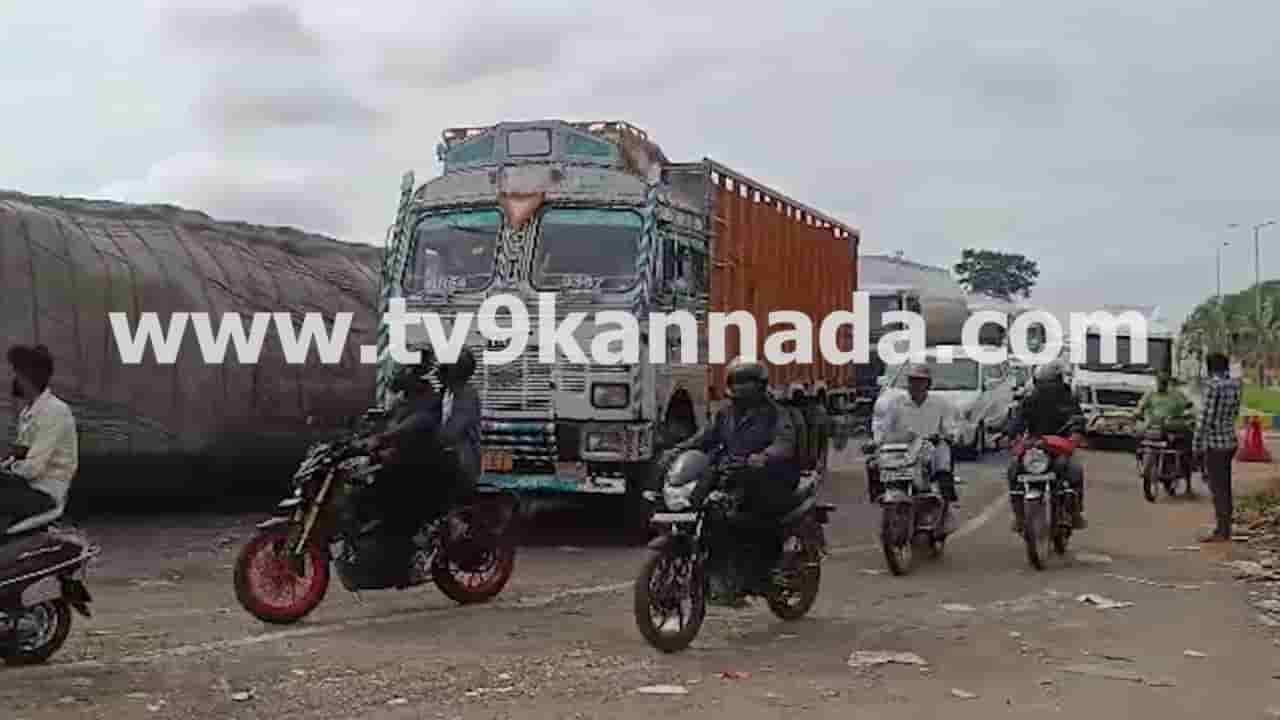 ನೆಲಮಂಗಲ: ಹನುಮಂತಪುರ ಗೇಟ್ ಬಳಿ ಹೆದ್ದಾರಿ ಮಧ್ಯದಲ್ಲೇ ಲಾರಿ ಪಲ್ಟಿ, 5-6 ಕಿ.ಮೀ ಟ್ರಾಫಿಕ್ ಜಾಮ್
