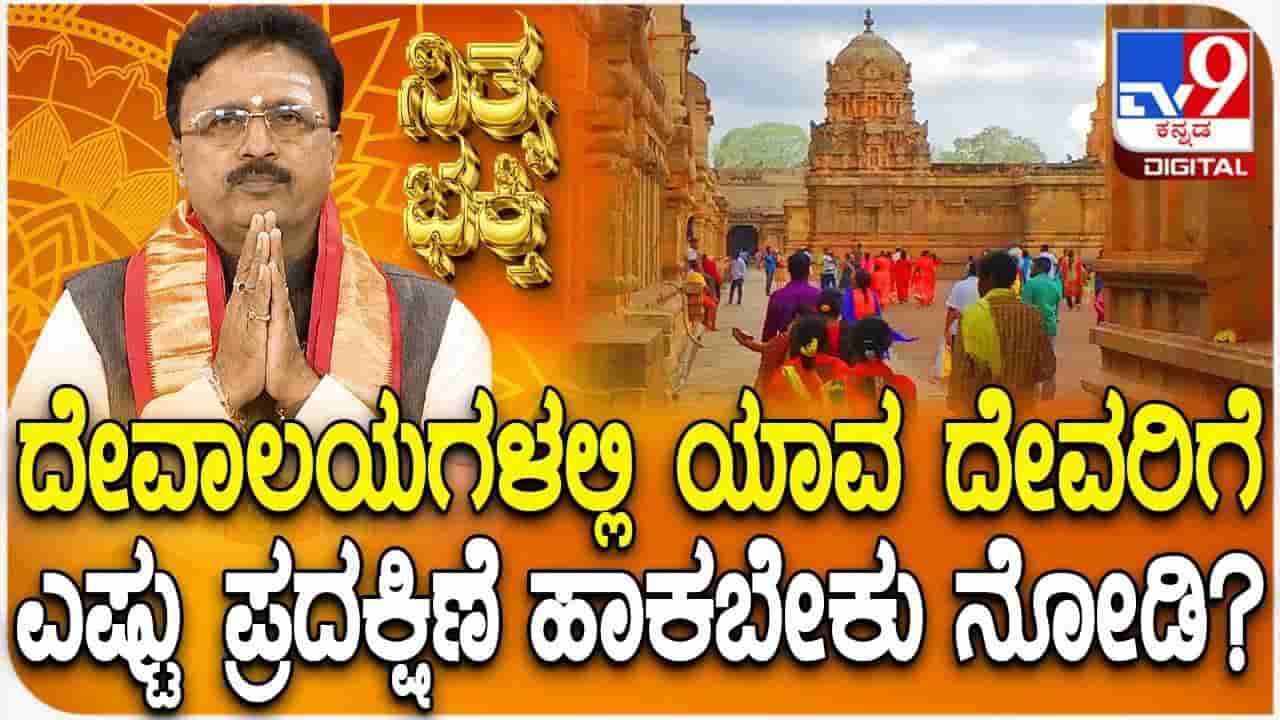 ಬೆಂಗಳೂರು, ಮಾರ್ಚ್ 05: ಟಿವಿ9 ನಿತ್ಯ ಭಕ್ತಿ ಕಾರ್ಯಕ್ರಮದಲ್ಲಿ ದೇವಾಲಯಗಳಲ್ಲಿ ಯಾವ ದೇವರಿಗೆ ಎಷ್ಟು ಪ್ರದಕ್ಷಿಣೆ ಹಾಕಬೇಕು ಎಂದು ಡಾ.ಬಸವರಾಜ ಗುರೂಜಿ ವಿವರಿಸಿದ್ದಾರೆ. ದೇವಾಲಯಗಳಲ್ಲಿ ಪ್ರದಕ್ಷಿಣೆ ಹಾಕುವ ಸಂಪ್ರದಾಯವು ಪ್ರಾಚೀನ ಕಾಲದಿಂದಲೂ ರೂಢಿಯಲ್ಲಿದೆ. ಸಾಮಾನ್ಯವಾಗಿ, ಭಕ್ತರು ದೇವರಿಗೆ ಮೂರು ಪ್ರದಕ್ಷಿಣೆಗಳನ್ನು ಹಾಕುತ್ತಾರೆ. ಇದಕ್ಕೆ ಧಾರ್ಮಿಕ ಮತ್ತು ವೈಜ್ಞಾನಿಕ ಕಾರಣಗಳೆರಡೂ ಇವೆ. ಮೂರು ಪ್ರದಕ್ಷಿಣೆಗಳು ತ್ರಿಗುಣಗಳಾದ ಸತ್ವ, ರಜಸ್, ತಮಸ್ ಹಾಗೂ ಮತ್ಸ್ಯಲೋಕ, ಸ್ವರ್ಗಲೋಕ, ಪಾತಾಳಲೋಕಗಳ ಸಂಕೇತವಾಗಿವೆ. ಇದು ಭಗವಂತನಿಗೆ ಕಾಯ, ವಾಚ, ಮನಸಗಳಿಂದ ಶರಣಾಗತಿಯನ್ನು ಸೂಚಿಸುತ್ತದೆ.