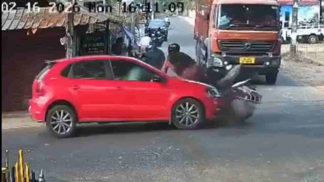 ಕೇರಳ ಫೆ.20: ಮಡಕ್ಕಲ್ ಜಂಕ್ಷನ್ನಲ್ಲಿ (Madakkal Junction) ನಡೆದ ಭೀಕರ ಅಪಘಾತದ ದೃಶ್ಯಗಳು ಸಾಮಾಜಿಕ ಜಾಲತಾಣಗಳಲ್ಲಿ ವೈರಲ್ ಆಗುತ್ತಿದೆ. ಸ್ಕೂಟರ್ನಲ್ಲಿ ಬಂದ ಮಹಿಳೆಯೊಬ್ಬರಿಗೆ ರಸ್ತೆ ಕ್ರಾಸ್ ಮಾಡುವ ವೇಳೆ, ವೇಗವಾಗಿ ಬಂದ ಕೆಂಪು ಕಾರೊಂದು ಡಿಕ್ಕಿ ಹೊಡೆದಿದೆ. ಡಿಕ್ಕಿ ಹೊಡೆದ ಪರಿಣಾಮ ಮಹಿಳೆ ಎತ್ತರಕ್ಕೆ ಗಾಳಿಯಲ್ಲಿ ಹಾರಿ ಬಿದ್ದಿದ್ದಾರೆ. ಈ ವಿಡಿಯೋವನ್ನು ಎಕ್ಸ್ ಖಾತೆಯಲ್ಲಿ ಹಂಚಿಕೊಳ್ಳಲಾಗಿದೆ. ಅಪಘಾತದ ಭೀಕರತೆ ಸಿಸಿಟಿವಿ ಕ್ಯಾಮೆರಾದಲ್ಲಿ ಸೆರೆಯಾಗಿದೆ. ಗಂಭೀರವಾಗಿ ಗಾಯಗೊಂಡಿರುವ ಮಹಿಳೆ, ತಕ್ಷಣವೇ ಆಸ್ಪತ್ರೆಗೆ ದಾಖಲಿಸಲಾಗಿದ್ದು, ಚಿಕಿತ್ಸೆ ನೀಡಲಾಗುತ್ತಿದೆ.
