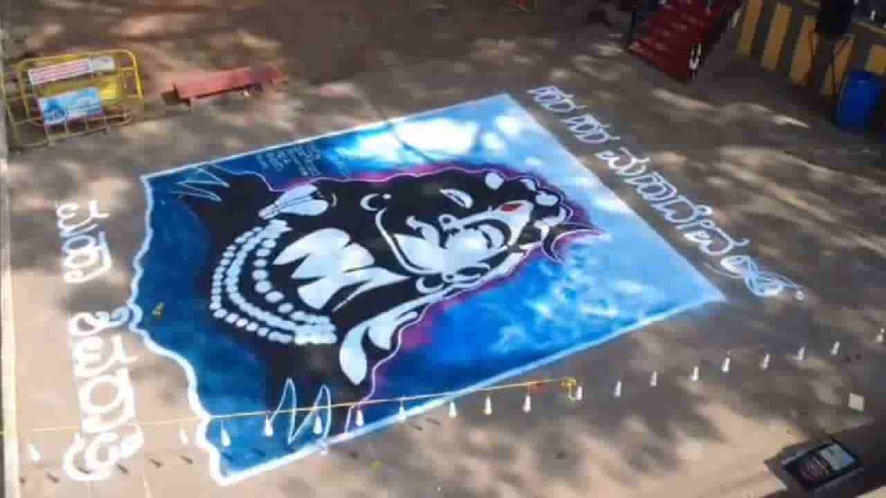 ರಂಗೋಲಿಯಲ್ಲಿ ಅರಳಿದ ಶಿವ: ಡ್ರೋಣ್ ನಲ್ಲಿ ಶಿವನ ಚಿತ್ರ ಸೆರೆ