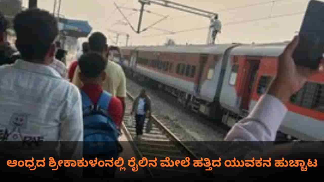 ಆಂಧ್ರದ ಶ್ರೀಕಾಕುಳಂನಲ್ಲಿ ರೈಲಿನ ಮೇಲೆ ಹತ್ತಿದ ಯುವಕನ ಹುಚ್ಚಾಟ