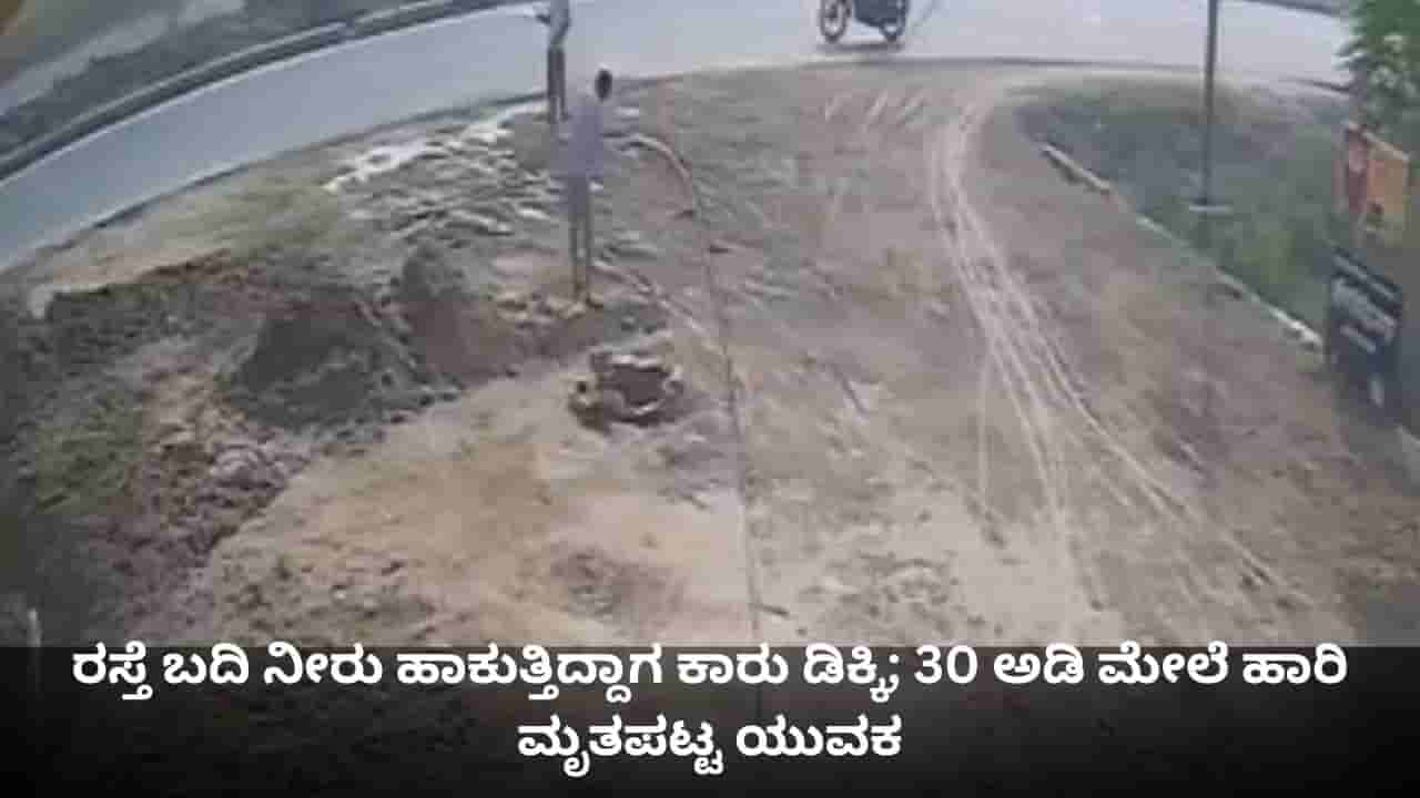 ರಸ್ತೆ ಬದಿ ನೀರು ಹಾಕುತ್ತಿದ್ದಾಗ ಕಾರು ಡಿಕ್ಕಿ; 30 ಅಡಿ ಮೇಲೆ ಹಾರಿ ಮೃತಪಟ್ಟ ಯುವಕ