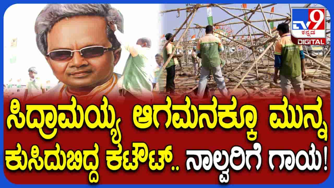 ಸಿಎಂ ಸಿದ್ದರಾಮಯ್ಯ ಆಗಮನಕ್ಕೂ ಮುನ್ನ ಕುಸಿದುಬಿದ್ದ ಬೃಹತ್ ಕಟೌಟ್​ಗಳು, ನಾಲ್ವರಿಗೆ ಗಾಯ