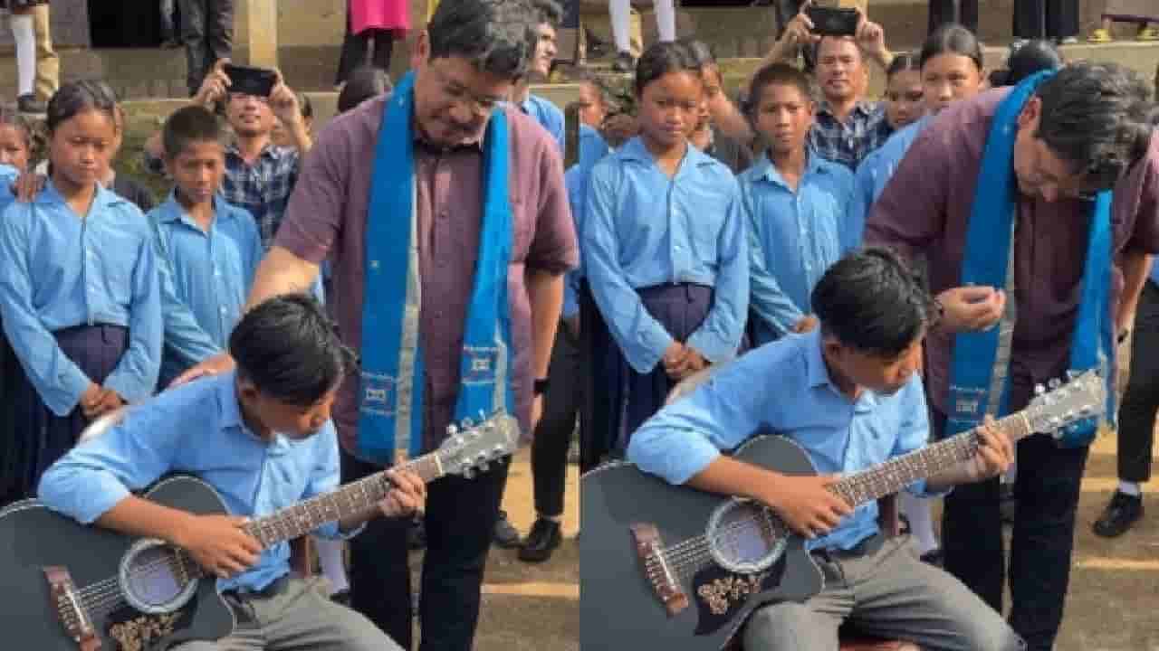 ವಿದ್ಯಾರ್ಥಿಗೆ ಗಿಟಾರ್ ನುಡಿಸಲು ಕಲಿಸಿದ ಮೇಘಾಲಯ ಸಿಎಂ; ಸರಳತನಕ್ಕೆ ಭಾರೀ ಮೆಚ್ಚುಗೆ