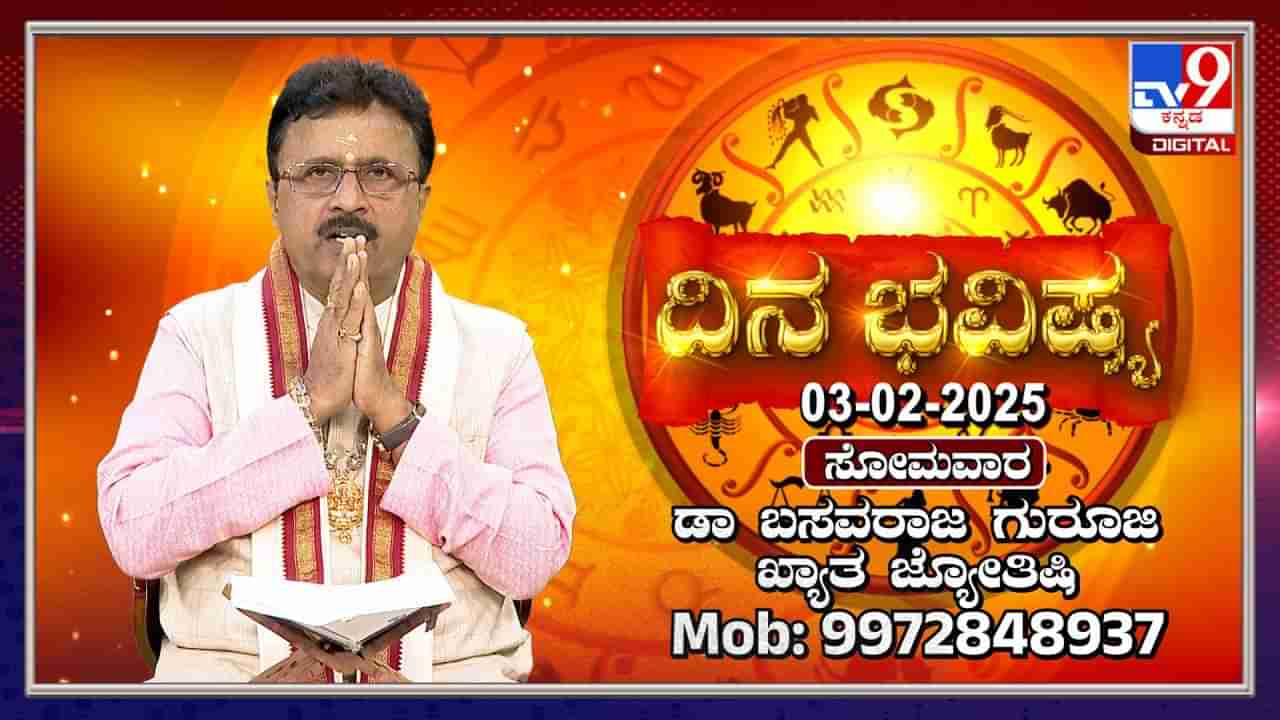 ಫೆಬ್ರವರಿ 3 ಸೋಮವಾರದ ರಾಶಿಫಲವನ್ನು ಖ್ಯಾತ ಜ್ಯೋತಿಷಿ ಬಸವರಾಜ ಗುರೂಜಿ ತಿಳಿಸಿದ್ದಾರೆ. ಎಲ್ಲಾ 12 ರಾಶಿಗಳಿಗೂ ದಿನದ ಫಲಗಳನ್ನು ವಿವರಿಸಲಾಗಿದೆ. ಪ್ರತಿ ರಾಶಿಗೂ ಶುಭ ಗ್ರಹಗಳ ಸಂಖ್ಯೆ, ಆರ್ಥಿಕ, ವೃತ್ತಿಪರ ಮತ್ತು ಆರೋಗ್ಯದ ಮೇಲೆ ಪ್ರಭಾವ, ಶುಭ ಕಾಲಗಳು, ಅದೃಷ್ಟ ಸಂಖ್ಯೆಗಳು ಮತ್ತು ಶುಭ ದಿಕ್ಕುಗಳನ್ನು ತಿಳಿಸಲಾಗಿದೆ. ಈ ವಿಡಿಯೋ ನಿಮ್ಮ ದಿನವನ್ನು ಯಶಸ್ವಿಯಾಗಿ ಕಳೆಯಲು ಸಹಾಯ ಮಾಡುತ್ತದೆ.