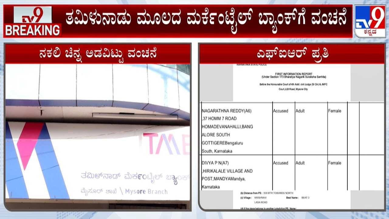 ಜಿಲ್ಲೆಯ ನಾರಾಯಣಶಾಸ್ತ್ರಿ ರಸ್ತೆಯಲ್ಲಿರುವ ತಮಿಳುನಾಡು ಮೂಲದ ಮರ್ಕೆಂಟೈಲ್ ಬ್ಯಾಂಕ್‌ನಲ್ಲಿ ನಕಲಿ ಚಿನ್ನಾಭರಣಗಳನ್ನು ಗಿರವಿ ಇಟ್ಟು 56.78 ಲಕ್ಷ ರೂಪಾಯಿ ವಂಚನೆ ಮಾಡಿರುವ ಪ್ರಕರಣ ಬೆಳಕಿಗೆ ಬಂದಿದೆ. ಈ ಸಂಬಂಧ ಬ್ಯಾಂಕ್ ಸಿಬ್ಬಂದಿ ಸುರೇಶ್ ಕಣ್ಣನ್ ನೀಡಿದ ದೂರಿನ ಆಧಾರದ ಮೇಲೆ ದೇವರಾಜ ಪೊಲೀಸ್ ಠಾಣೆಯಲ್ಲಿ ಏಳು ಮಂದಿಯ ವಿರುದ್ಧ ಎಫ್‌ಐಆರ್ ದಾಖಲಿಸಲಾಗಿದೆ. ಮೈಸೂರಿನ ಅಬ್ದುಲ್ ಜಲೀಲ್, ಮಂಡ್ಯದ ಸಾಗರ್, ಪುಟ್ಟರಾಜು, ರವಿಕುಮಾರ್, ಆತನ ಪತ್ನಿ ದಿವ್ಯ, ಬೆಂಗಳೂರಿನ ನಾಗರತ್ನ ರೆಡ್ಡಿ ಹಾಗೂ ಟಿ.ನರಸೀಪುರದ ರವೀಂದ್ರ ಕುಮಾರ್ ಆರೋಪಿಗಳಾಗಿದ್ದಾರೆ.