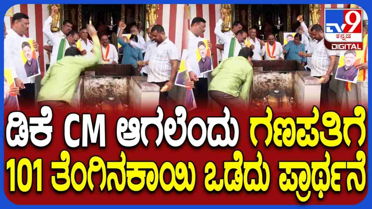 ಮೈಸೂರು: ಡಿಕೆ ಶಿವಕುಮಾರ್ ಸಿಎಂ ಆಗಲೆಂದು ಗಣಪತಿಗೆ 101 ತೆಂಗಿನಕಾಯಿ ಒಡೆದು ಪ್ರಾರ್ಥಿಸಿದ ಅಭಿಮಾನಿಗಳು