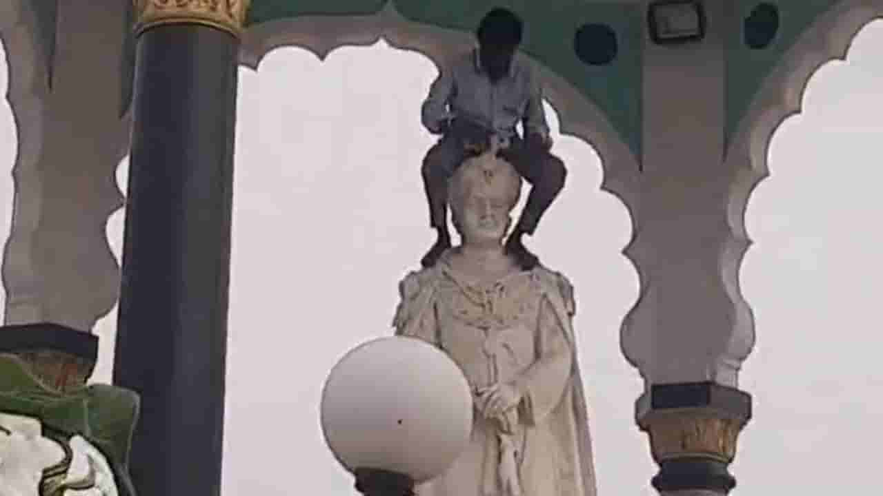 ನಾಲ್ವಡಿ ಕೃಷ್ಣರಾಜ ಒಡೆಯರ್ ಪ್ರತಿಮೆ ಮೇಲೆ ಕುಳಿತು ವ್ಯಕ್ತಿಯ ಹುಚ್ಚಾಟ: ವಿಡಿಯೋ ನೋಡಿ