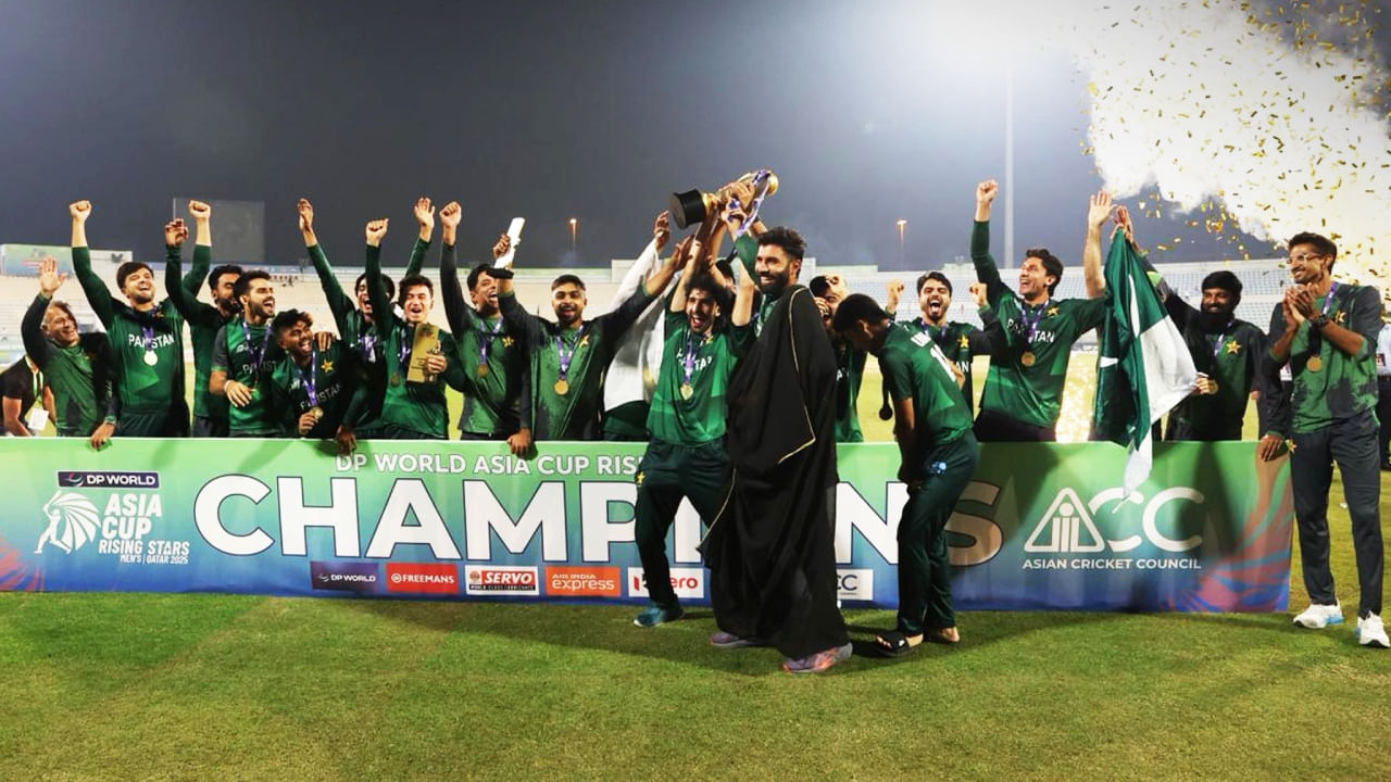 ರೈಸಿಂಗ್ ಸ್ಟಾರ್ಸ್ ಏಷ್ಯಾಕಪ್ ಟೂರ್ನಿಯಲ್ಲಿ ಪಾಕಿಸ್ತಾನ್ ಎ ತಂಡ ಚಾಂಪಿಯನ್ ಪಟ್ಟ ಅಲಂಕರಿಸಿದೆ. ದೋಹಾದಲ್ಲಿ ನಡೆದ ಫೈನಲ್ ಪಂದ್ಯದಲ್ಲಿ ಪಾಕಿಸ್ತಾನ್ ಎ ಮತ್ತು ಬಾಂಗ್ಲಾದೇಶ್ ಎ ತಂಡಗಳು ಮುಖಾಮುಖಿಯಾಗಿದ್ದವು. ಈ ಪಂದ್ಯದಲ್ಲಿ ಟಾಸ್ ಗೆದ್ದ ಬಾಂಗ್ಲಾದೇಶ್ ತಂಡವು ಬೌಲಿಂಗ್ ಆಯ್ದುಕೊಂಡಿದ್ದರು. ಅದರಂತೆ ಮೊದಲು ಬ್ಯಾಟ್ ಮಾಡಿದ ಪಾಕಿಸ್ತಾನ್ ತಂಡವು 20 ಓವರ್ಗಳಲ್ಲಿ 125 ರನ್ಗಳಿಸಿ ಆಲೌಟ್ ಆಯಿತು.