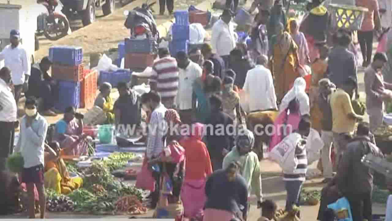 ಧಾರವಾಡದ ಎಪಿಎಮ್ಸಿ ಮಾರ್ಕೆಟ್ನಲ್ಲಿ ಜನರ ಮುಖದ ಮೇಲೆ ಮಾಸ್ಕ್ ಇಲ್ಲ, ದೈಹಿಕ ಅಂತರವಂತೂ ಇಲ್ಲವೇ ಇಲ್ಲ!!