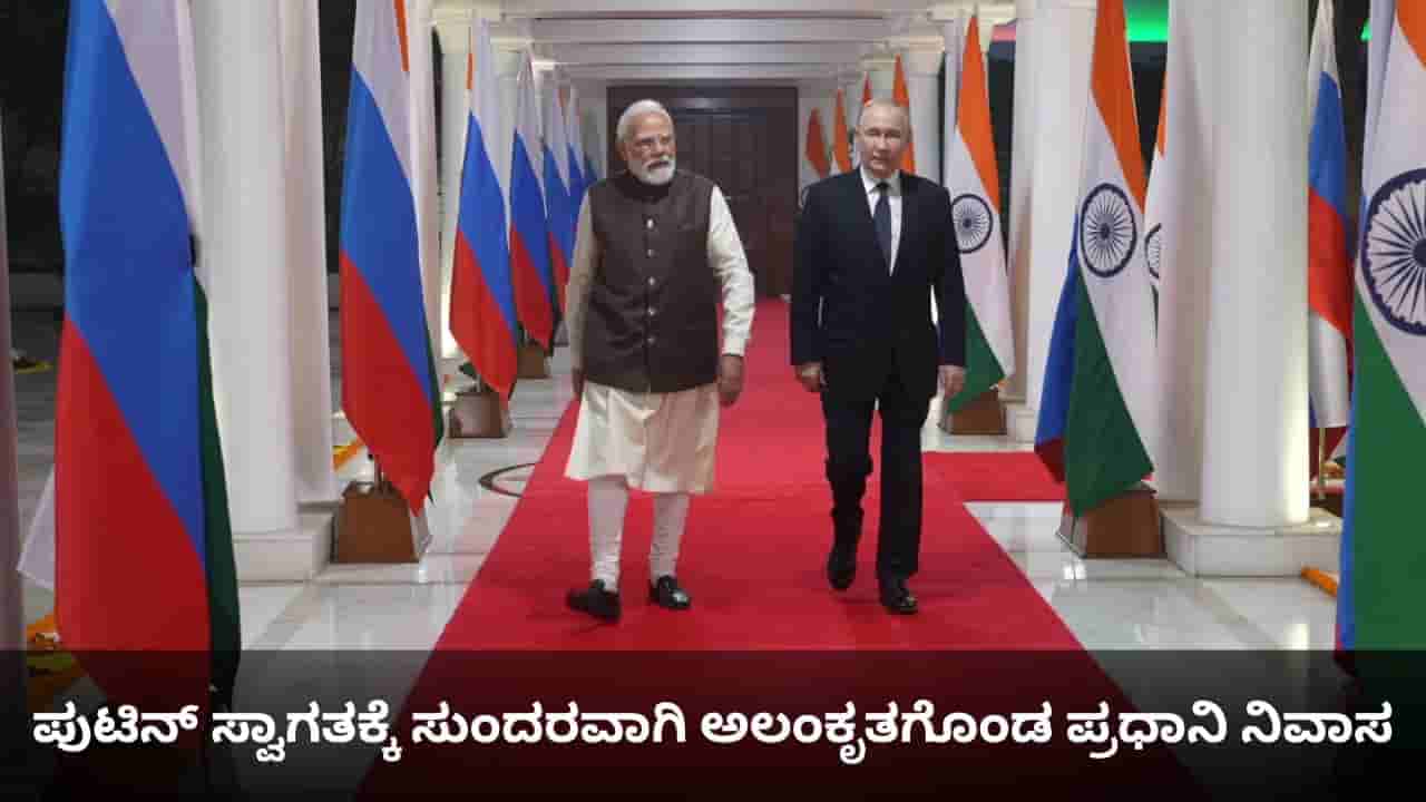 ನವದೆಹಲಿ, ಡಿಸೆಂಬರ್ 4: ಎರಡು ದಿನಗಳ ಭೇಟಿಗಾಗಿ ರಷ್ಯಾ ಅಧ್ಯಕ್ಷ ವ್ಲಾಡಿಮಿರ್ ಪುಟಿನ್ (Putin in India) ದೆಹಲಿಗೆ ಆಗಮಿಸಿದ್ದಾರೆ. 4 ವರ್ಷಗಳ ಬಳಿಕ ಅವರು ಭಾರತಕ್ಕೆ ಭೇಟಿ ನೀಡುತ್ತಿದ್ದಾರೆ. ಅಲ್ಲದೆ, ಅಮೆರಿಕದ ಜೊತೆಗಿನ ಭಾರತದ ಸಂಬಂಧ ಹಳಸಿರುವ ಹಿನ್ನೆಲೆಯಲ್ಲಿ ಈ ಭೇಟಿ ಜಾಗತಿಕವಾಗಿಯೂ ಬಹಳ ಮಹತ್ವ ಪಡೆದಿದೆ. ಇಂದು ಖುದ್ದಾಗಿ ದೆಹಲಿಯ ವಿಮಾನ ನಿಲ್ದಾಣಕ್ಕೆ ತೆರಳಿ ಪುಟಿನ್ ಅವರನ್ನು ಪ್ರಧಾನಿ ಮೋದಿ ಬರಮಾಡಿಕೊಂಡಿದ್ದಾರೆ. ಇದಾದ ಬಳಿಕ ಇಬ್ಬರೂ ಒಂದೇ ಕಾರಿನಲ್ಲಿ ಪ್ರಧಾನಮಂತ್ರಿಗಳ ಸರ್ಕಾರಿ ನಿವಾಸಕ್ಕೆ ತೆರಳಿದ್ದಾರೆ. ಪುಟಿನ್ ಅವರ ಸ್ವಾಗತಕ್ಕಾಗಿ ಪ್ರಧಾನಿಯ ಅಧಿಕೃತ ನಿವಾಸವನ್ನು ಬಹಳ ಸುಂದರವಾಗಿ ಅಲಂಕರಿಸಲಾಗಿತ್ತು. ಇಂದು ಇಲ್ಲಿ ಪ್ರಧಾನಿ ಮೋದಿ ತಮ್ಮ ಗೆಳೆಯ ಪುಟಿನ್ಗಾಗಿ ವಿಶೇಷ ಭೋಜನಕೂಟವನ್ನು ಆಯೋಜಿಸಿದ್ದಾರೆ.
