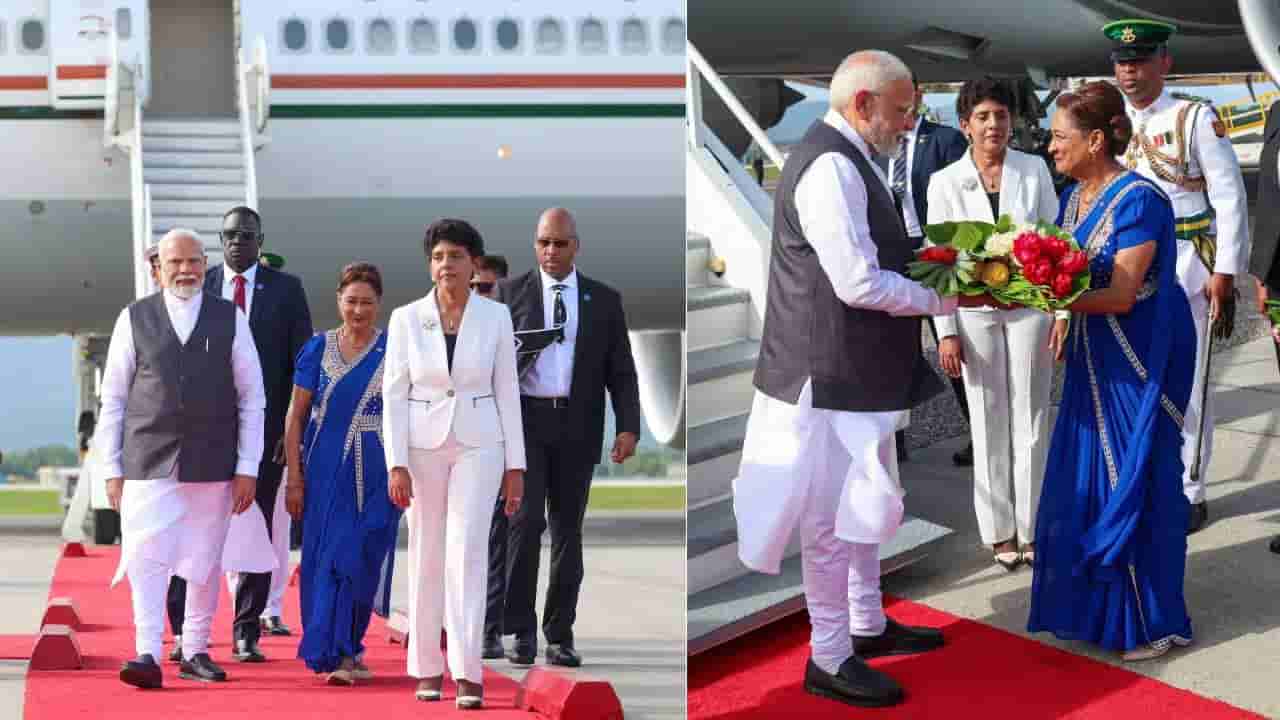 ಪ್ರಧಾನಿ ನರೇಂದ್ರ ಮೋದಿ ಟ್ರಿನಿಡಾಡ್ ಹಾಗೂ ಟೊಬಾಗೋ ಭೇಟಿಗೆ ತೆರಳಿದ್ದಾರೆ. ಅಂತಾರಾಷ್ಟ್ರೀಯ ಏರ್ಪೋರ್ಟ್ನಲ್ಲಿ ಭವ್ಯ ಸ್ವಾಗತ ಸಿಕ್ಕಿತು. ಪ್ರಧಾನಿ ಕಮಲಾ, 38 ಸಚಿವರು ನಾಲ್ಕು ಸಂಸದರು ಮೋದಿ ಸ್ವಾಗತಕ್ಕೆಂದು ಏರ್ಪೋರ್ಟ್ ತೆರಳಿದ್ದರು. ಇದು ಭಾರತ ಹಾಗೂ ಈ ದೇಶದ ನಡುವಿನ ಸಂಬಂಧ ಹೇಗಿದೆ ಎಂಬುದನ್ನು ತೋರಿಸುತ್ತದೆ. ಇಡೀ ಸಚಿವ ಸಂಪುಟವೇ ಮೋದಿ ಸ್ವಾಗತಕ್ಕೆಂದು ಬಂದಿತ್ತು. ಪ್ರಧಾನಿ ನರೇಂದ್ರ ಮೋದಿ ಪ್ರಧಾನಿ ಕಮಲಾರನ್ನು ಬಿಹಾರದ ಮಗಳು ಎಂದು ಕರೆದಿದ್ದಾರೆ.