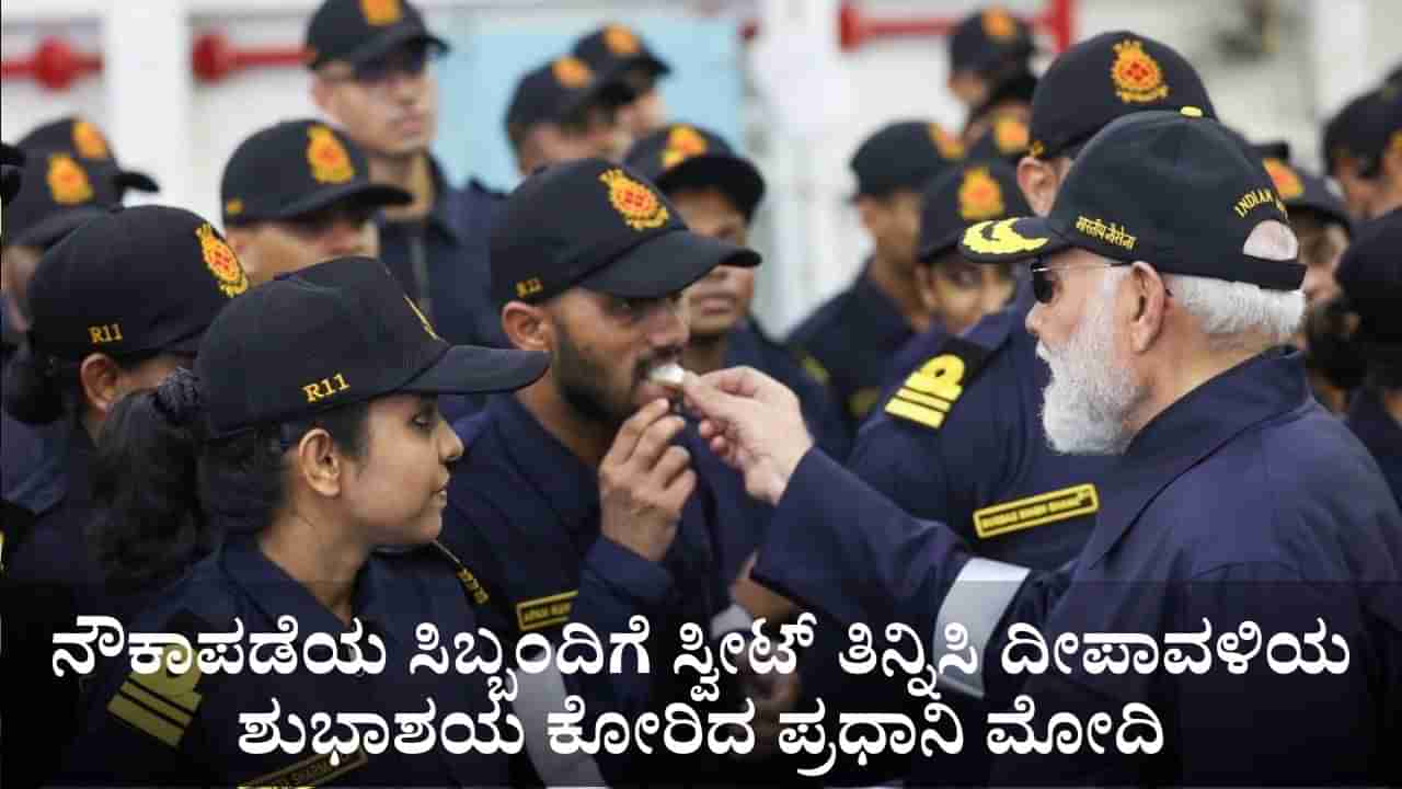 ನೌಕಾಪಡೆಯ ಸಿಬ್ಬಂದಿಗೆ ಸ್ವೀಟ್ ತಿನ್ನಿಸಿ ದೀಪಾವಳಿಯ ಶುಭಾಶಯ ಕೋರಿದ ಪ್ರಧಾನಿ ಮೋದಿ