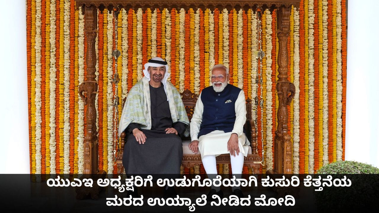 ಯುಎಇ ಅಧ್ಯಕ್ಷರಿಗೆ ಉಡುಗೊರೆಯಾಗಿ ಕುಸುರಿ ಕೆತ್ತನೆಯ ಮರದ ಉಯ್ಯಾಲೆ ನೀಡಿದ ಮೋದಿ