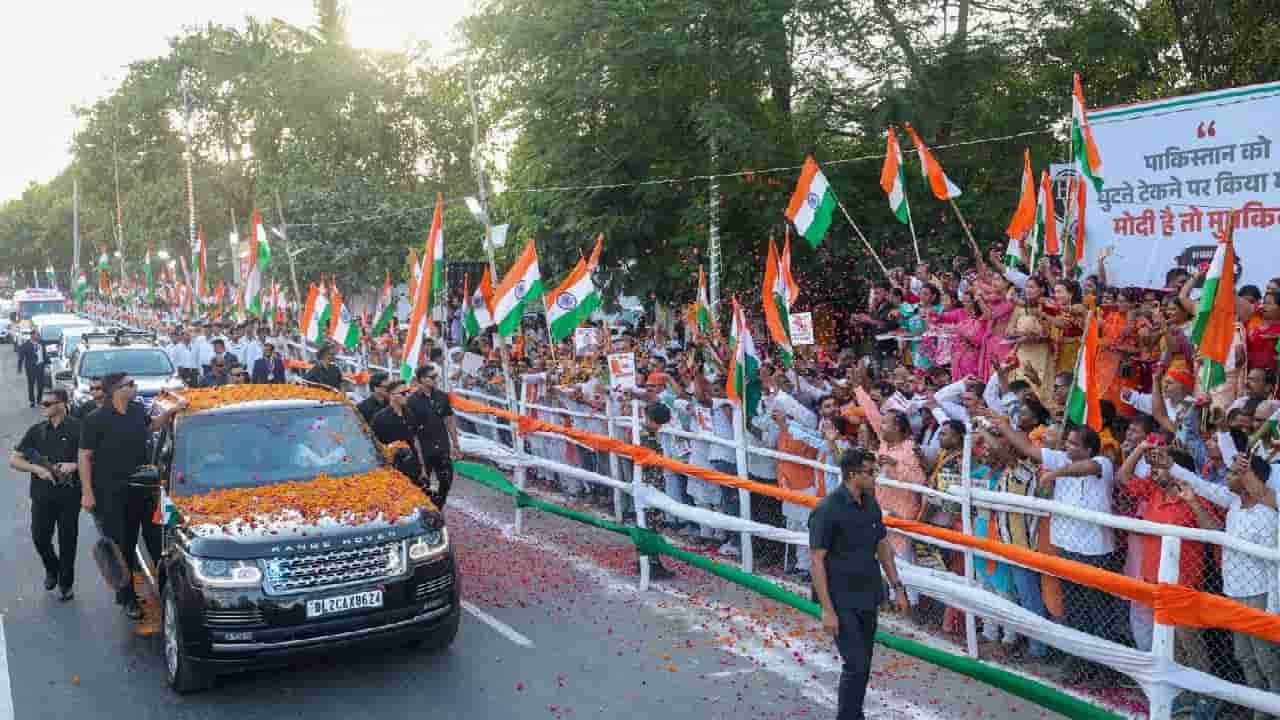 ಪಾಟ್ನಾ, ಮೇ 29: ಪ್ರಧಾನಿ ನರೇಂದ್ರ ಮೋದಿ (PM Narendra Modi) ತಮ್ಮ 2 ದಿನಗಳ ಬಿಹಾರ ಭೇಟಿಯ ಮೊದಲ ದಿನವಾದ ಇಂದು ಪಾಟ್ನಾಗೆ ಆಗಮಿಸಿದ್ದಾರೆ. ಇಲ್ಲಿ ಅವರು ಬೃಹತ್ ರೋಡ್ ಶೋ (Road Show) ನಡೆಸಿದರು. ಪಾಟ್ನಾದಲ್ಲಿ ಪ್ರಧಾನಿ ಮೋದಿ ಅವರ ರೋಡ್ ಶೋ ವೇಳೆ ರಸ್ತೆಯ ಎರಡೂ ಬದಿಗಳಲ್ಲಿ ಸಾವಿರಾರು ಜನರು ಸಾಲುಗಟ್ಟಿ ನಿಂತಿದ್ದರು. ಪ್ರಧಾನಿ ಮೋದಿ ಅವರನ್ನು ನೋಡಲು ಟೆರೇಸ್ಗಳ ಮೇಲೆ ಜನರು ಸೇರಿದ್ದರು. ಮೋದಿ ಅವರು ತಮ್ಮ ಕಾರಿನ ಒಳಗಿನಿಂದಲೇ ಜನಸಮೂಹಕ್ಕೆ ಕೈ ಬೀಸಿದರು. ಪಾಟ್ನಾ ವಿಮಾನ ನಿಲ್ದಾಣದ ಬಳಿಯ ಅರಣ್ಯ ಭವನದಲ್ಲಿ ರೋಡ್ ಶೋ ಪ್ರಾರಂಭವಾಯಿತು. ಪ್ರಧಾನಿಯವರ ಮೆರವಣಿಗೆ ಬೀದಿಗಳಲ್ಲಿ ಚಲಿಸುತ್ತಿದ್ದಂತೆ ಜನರು ಹೂವಿನ ದಳಗಳನ್ನು ಸುರಿಸಿ ‘ಭಾರತ್ ಮಾತಾ ಕಿ ಜೈ’ ಘೋಷಣೆಗಳನ್ನು ಕೂಗಿದರು.