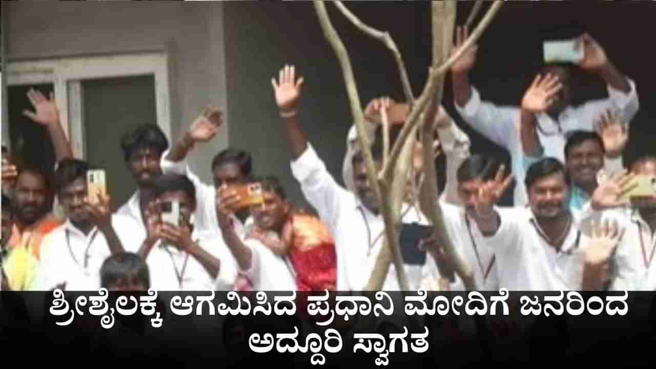 ಶ್ರೀಶೈಲಕ್ಕೆ ಆಗಮಿಸಿದ ಪ್ರಧಾನಿ ಮೋದಿಗೆ ಕೇಸರಿ ಬಾವುಟ ಹಿಡಿದು ಜನರಿಂದ ಅದ್ದೂರಿ ಸ್ವಾಗತ