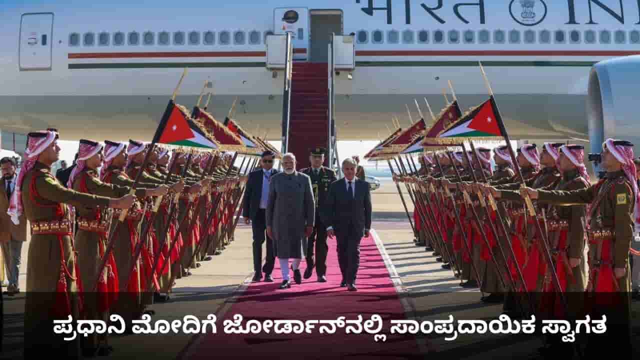 ನವದೆಹಲಿ, ಡಿಸೆಂಬರ್ 15: ಪ್ರಧಾನಿ ನರೇಂದ್ರ ಮೋದಿ (PM Modi in Jordan) ಇಂದು ಸಂಜೆ ಜೋರ್ಡಾನ್ ತಲುಪಿದ್ದಾರೆ. ಈ ವೇಳೆ ಖುದ್ದಾಗಿ ಜೋರ್ಡಾನ್ ಪ್ರಧಾನಿ ಜಾಫರ್ ಹಸನ್ ವಿಮಾನ ನಿಲ್ದಾಣಕ್ಕೆ ಆಗಮಿಸಿ ಮೋದಿಯನ್ನು ಬರಮಾಡಿಕೊಂಡರು. ಬಳಿಕ ಭಾರತದ ಪ್ರದಾನಿಗೆ ಜೋರ್ಡಾನ್ನಲ್ಲಿ ಸಾಂಪ್ರದಾಯಿಕ ಸ್ವಾಗತ ನೀಡಲಾಯಿತು. ಜೋರ್ಡಾನ್ಗೆ ಅಧಿಕೃತ ಭೇಟಿಯ ಆರಂಭವನ್ನು ಸೂಚಿಸುವ ಸಲುವಾಗಿ ಪ್ರಧಾನಿ ನರೇಂದ್ರ ಮೋದಿ ಅಮ್ಮನ್ಗೆ ತೆರಳಿದಾಗ ಅವರಿಗೆ ಔಪಚಾರಿಕ ಸ್ವಾಗತ ನೀಡಲಾಯಿತು.