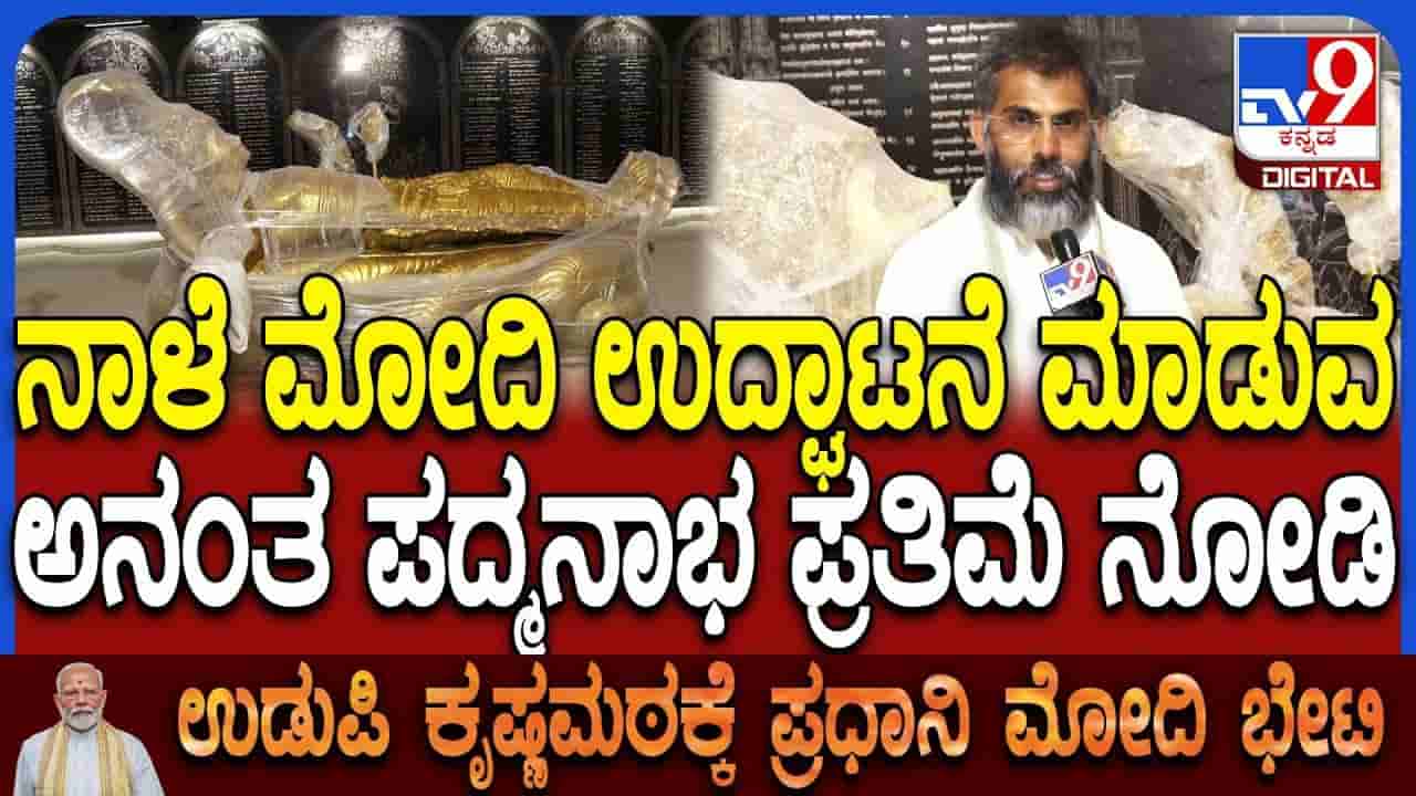 ಪ್ರಧಾನಿ ನರೇಂದ್ರ ಮೋದಿ ಅವರು ನಾಳೆ (ನವೆಂಬರ್ 28) ಉಡುಪಿಗೆ ಆಗಮಿಸಲಿದ್ದು, ವಿವಿಧ ಕಾರ್ಯಕ್ರಮಗಳಲ್ಲಿ ಪಾಲ್ಗೊಳ್ಳಲಿದ್ದಾರೆ. ಶುಕ್ರವಾರ ಬೆಳಗ್ಗೆ 11 ಗಂಟೆಯಿಂದ 11.30 ರೋಡ್ ಶೋನಲ್ಲಿ ಪ್ರಧಾನಿ ಮೋದಿ ಭಾಗವಹಿಸಲಿದ್ದಾರೆ. ಆ ಬಳಿಕ ಶ್ರೀಕೃಷ್ಣ ಮಠಕ್ಕೆ ಆಗಮಿಸಿ ದೇವರ ದರ್ಶನ, ಲಕ್ಷ ಕಂಠ ಗೀತಾ ಪಾರಾಯಣ ಕಾರ್ಯಕ್ರಮದಲ್ಲಿ ಭಾಗವಹಿಸಲಿದ್ದಾರೆ. ಇದಕ್ಕೆ ಬೇಕಾದ ಸಿದ್ಧತೆ ಅಂತಿಮವಾಗಿದೆ. ಇನ್ನು ಇದೇ ವೇಳೆ ಅನಂತ ಪದ್ಮನಾಭ ಪ್ರತಿಮೆಯನ್ನು ಅನಾವರಣಗೊಳಿಸಲಿದ್ದಾರೆ. ಇನ್ನು ಈ ಅನಂತ ಪದ್ಮನಾಭ ಪ್ರತಿಮೆ ಹೇಗಿದೆ ಎನ್ನುವುದನ್ನು ದೃಶ್ಯದಲ್ಲಿ ನೋಡಿ.