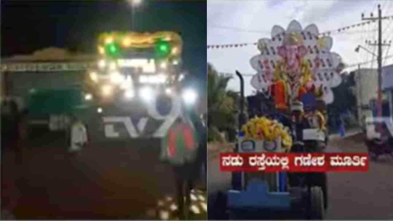ಚಿಕ್ಕಮಗಳೂರು ಜಿಲ್ಲೆಯ ಬೀರೂರಿನಲ್ಲಿ ಗಣೇಶ ವಿಸರ್ಜನಾ ಮೆರವಣಿಗೆ ವೇಳೆ ಮಸೀದಿ ಸಮೀಪ ಡಿಜೆ ಬಳಸಲು ಪೊಲೀಸರು ಅವಕಾಶ ನಿರಾಕರಿಸಿದ್ದಾರೆ. ಇದರಿಂದ ಆಕ್ರೋಶಗೊಂಡ ಸ್ಥಳೀಯರು ಟ್ರ್ಯಾಕ್ಟರ್ನಲ್ಲಿದ್ದ ಗಣೇಶ ಮೂರ್ತಿಯನ್ನು ರಸ್ತೆಯಲ್ಲೇ ನಿಲ್ಲಿಸಿ ಪ್ರತಿಭಟಿನೆ ನಡೆಸಿದ್ದಾರೆ. ನ್ಯಾಯ ಸಿಗುವವರೆಗೂ ವಿಸರ್ಜನೆ ಮಾಡುವುದಿಲ್ಲ ಎಂದು ಗ್ರಾಮಸ್ಥರು ಪಟ್ಟು ಹಿಡಿದಿದ್ದಾರೆ.