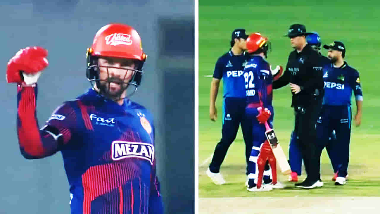 ಇದರಿಂದ ಕೋಪಗೊಂಡ ಇಫ್ತಿಕಾರ್ ಅಹ್ಮದ್ ಜಗಳಕ್ಕಿಳಿದಿದ್ದಾರೆ. ಈ ವೇಳೆ ಆಗಮಿಸಿದ ಮುಲ್ತಾನ್ ಸುಲ್ತಾನ್ಸ್ ತಂಡದ ನಾಯಕ ಮೊಹಮ್ಮದ್ ರಿಝ್ವಾನ್ ಕೂಡ ಕಾಲಿನ್ ಮನ್ರೊ ಜೊತೆ ಮಾತಿನ ಚಕಮಕಿ ನಡೆಸಿದರು. ಪರಿಸ್ಥಿತಿ ಕೈ ತಪ್ಪಿ ಹೋಗುತ್ತಿರುವುದನ್ನು ಗಮನಿಸಿದ ಅಂಪೈರ್ಗಳು ಮಧ್ಯ ಪ್ರವೇಶಿಸಿ ಆಟವನ್ನು ಮುಂದುವರೆಸಲು ಕೇಳಿಕೊಂಡಿದ್ದಾರೆ. ಇದೀಗ ಈ ವಾಕ್ಸಮರದ ವಿಡಿಯೋ ಸೋಷಿಯಲ್ ಮೀಡಿಯಾದಲ್ಲಿ ವೈರಲ್ ಆಗಿದೆ.