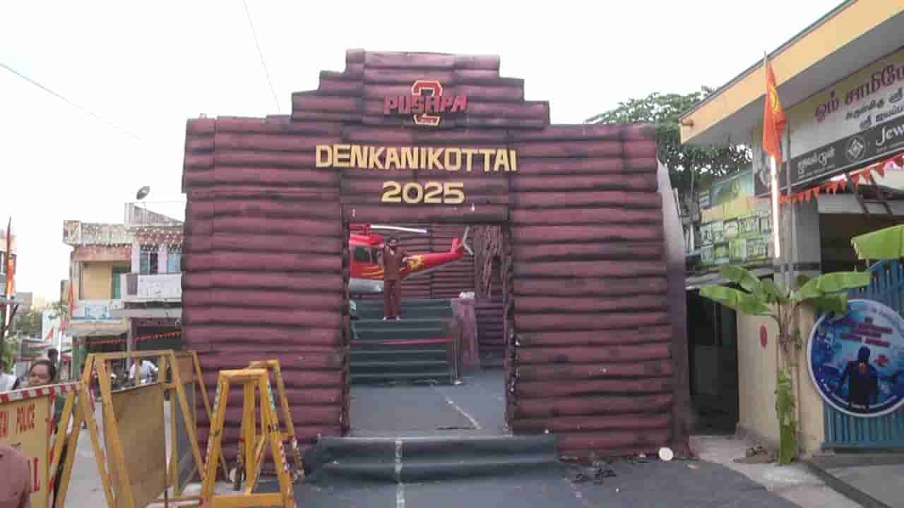 ಹೊಸೂರು ಬಳಿಯ ಡೆಂಕಣಿಕೋಟೆಯಲ್ಲಿ, ಪುಷ್ಪ-2 ಚಿತ್ರದ ಶೈಲಿಯಲ್ಲಿ ಅದ್ದೂರಿಯಾಗಿ ನಿರ್ಮಿಸಲಾಗಿರುವ ಗಣೇಶ ಮಂಟಪವು ಅಪಾರ ಸಂಖ್ಯೆಯ ಭಕ್ತರನ್ನು ಆಕರ್ಷಿಸುತ್ತಿದೆ. 18 ಲಕ್ಷ ರೂಪಾಯಿ ವೆಚ್ಚದ ಈ ಮಂಟಪವನ್ನು 100ಕ್ಕೂ ಹೆಚ್ಚು ಕಲಾವಿದರು ನಿರ್ಮಿಸಿದ್ದಾರೆ. ಬೆಂಗಳೂರು, ಆಂಧ್ರಪ್ರದೇಶ ಮತ್ತು ಕೇರಳದಿಂದಲೂ ಭಕ್ತರು ಆಗಮಿಸುತ್ತಿದ್ದಾರೆ.
