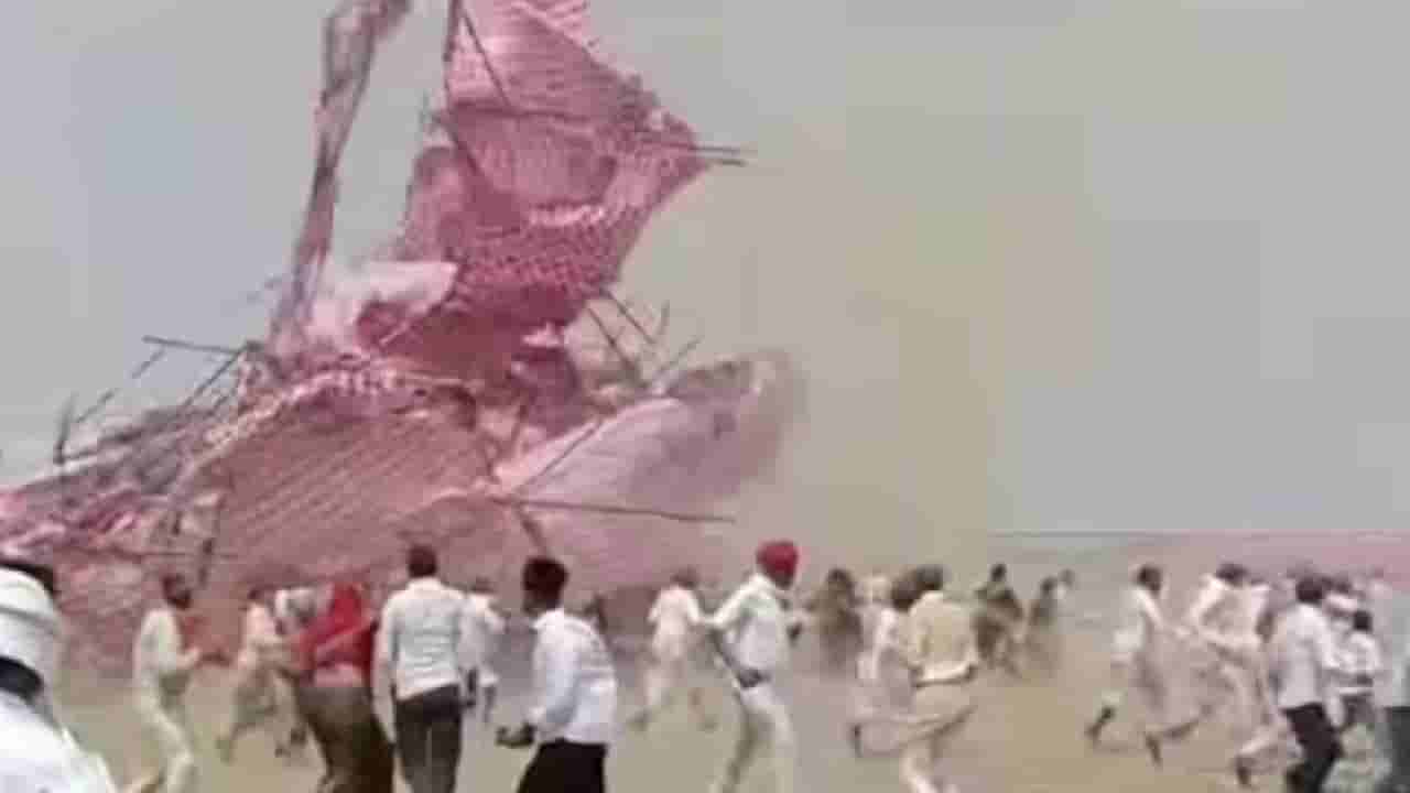ಸಾಮೂಹಿಕ ವಿವಾಹ ಸಮಾರಂಭದ ವೇಳೆ ಬಿರುಗಾಳಿ ಬೀಸಿ ನವ ಜೋಡಿಗಳು ಹೆದರಿ ಓಡಿ ಹೋಗಿರುವ ವಿಡಿಯೋ ವೈರಲ್ ಆಗಿದೆ.  ಬೇಸಿಗೆಯ ಆರಂಭದ ಬಿಸಿಲಿಗೆ ತತ್ತರಿಸಿದ್ದ ರಾಜಸ್ಥಾನದ ಟೋಂಕ್‌ನಲ್ಲಿ ಗುಡುಗು ಸಹಿತ ಮಳೆ ಎಲ್ಲರಿಗೂ ಸಂತೋಷ ನೀಡಬೇಕಿತ್ತು. ಆದರೆ, ಧಾಕಡ್ ಸಮುದಾಯ ಆಯೋಜಿಸಿದ್ದ 36 ಜೋಡಿಗಳ ಸಾಮೂಹಿಕ ವಿವಾಹದ ಮಂಟಪದಲ್ಲಿ ಬಿರುಗಾಳಿ, ಮಳೆ ಭೀಕರ ಅನಾಹುತವನ್ನೇ ಸೃಷ್ಟಿಸಿತ್ತು.