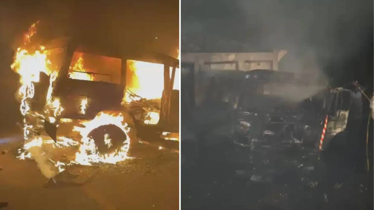 ಕಾರು ಹಾಗೂ ಡಂಪರ್ ಟ್ರಕ್ ನಡುವೆ ಡಿಕ್ಕಿ, ಹೊತ್ತಿಕೊಂಡ ಬೆಂಕಿ, ಮೂವರು ಸಜೀವದಹನ , ಐವರ ಸ್ಥಿತಿ ಗಂಭೀರ