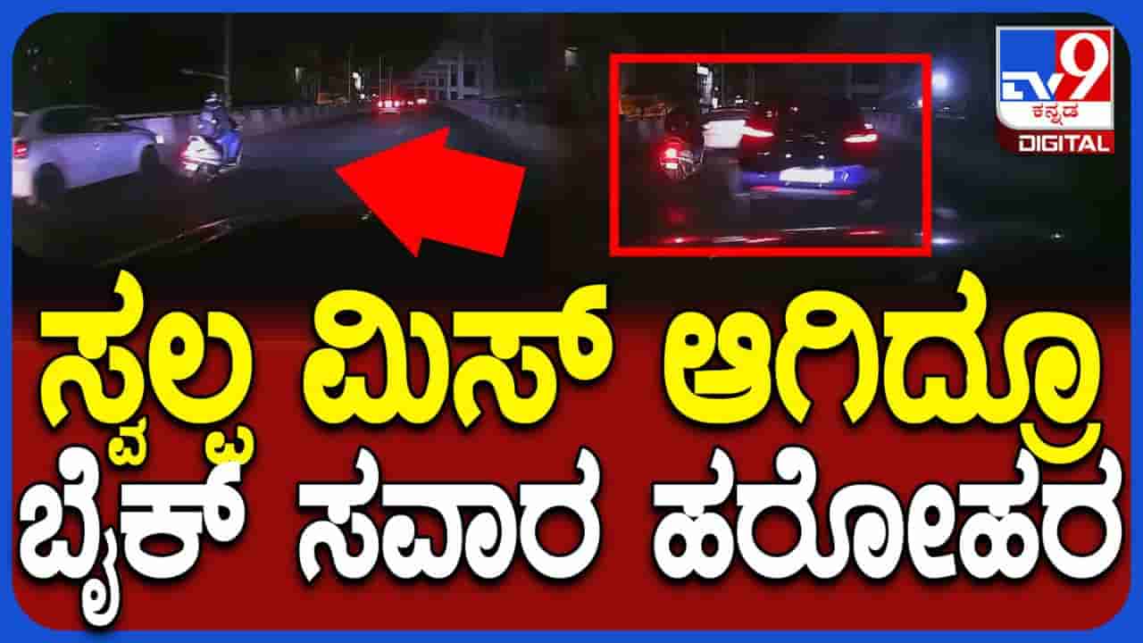 ಬೆಂಗಳೂರಿನ ಅಗರ ಫ್ಲೈಓವರ್ ಮೇಲೆ ಅತಿವೇಗ ಮತ್ತು ಅಜಾಗರೂಕತೆಯಿಂದ ಚಲಾಯಿಸಿದ ಕಾರ್ ಡ್ರೈವರ್ನಿಂದಾಗಿ, ಬೈಕ್ ಸವಾರನೊಬ್ಬ ಕೂದಲೆಳೆ ಅಂತರದಲ್ಲಿ ಭಾರೀ ಅಪಾಯದಿಂದ ಪಾರಾಗಿದ್ದಾನೆ. ಓವರ್ಟೇಕ್ ಮಾಡುವಾಗ ಸಂಭವಿಸಿದ ಈ ಘಟನೆ ಹಿಂಬದಿ ಕಾರ್ ಕ್ಯಾಮರಾದಲ್ಲಿ ಸೆರೆಯಾಗಿದೆ. ರ್ಯಾಶ್ ಡ್ರೈವಿಂಗ್ನಿಂದ ಸಂಭವಿಸಬಹುದಾದ ಅನಾಹುತವನ್ನು ಇದು ಎತ್ತಿ ತೋರಿಸುತ್ತದೆ.
