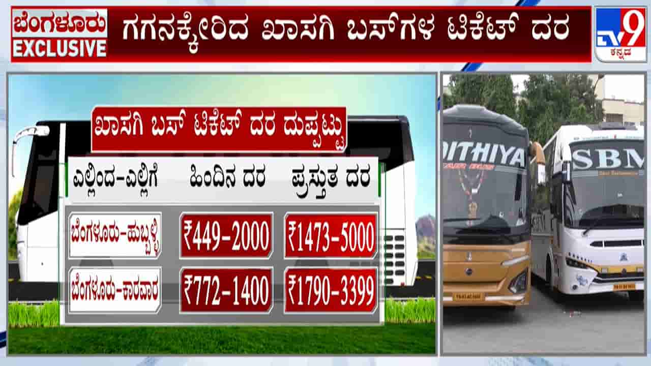ಬೆಂಗಳೂರು, ಜನವರಿ 23: ಸಾಲು ಸಾಲು ರಜೆ ಹಿನ್ನೆಲೆ ಖಾಸಗಿ ಬಸ್ ದರಗಳು ಗಣನೀಯವಾಗಿ ಏರಿಕೆಯಾಗಿವೆ. ನಾಳೆ ನಾಲ್ಕನೇ ಶನಿವಾರ, ಭಾನುವಾರ ಮತ್ತು ಸೋಮವಾರ ಗಣರಾಜ್ಯೋತ್ಸವದ ಹಿನ್ನೆಲೆ ಸತತ ಮೂರು ದಿನಗಳ ರಜೆ ಇರುವುದರಿಂದ ಜನರು ತಮ್ಮ ಊರುಗಳಿಗೆ ಪ್ರಯಾಣಿಸುತ್ತಾರೆ. ಈ ಸಂದರ್ಭವನ್ನು ದುರುಪಯೋಗಪಡಿಸಿಕೊಂಡ ಖಾಸಗಿ ಬಸ್ ಮಾಲೀಕರು ಪ್ರಯಾಣ ದರವನ್ನು ದುಪ್ಪಟ್ಟುಗೊಳಿಸಿದ್ದಾರೆ. ಬೆಂಗಳೂರಿನಿಂದ ಹುಬ್ಬಳ್ಳಿಗೆ ಹಿಂದಿನ ದರ 1473 ರೂ ಇತ್ತು, ಈಗ ಅದು 5000 ರೂ ತಲುಪಿದೆ. ಬೆಂಗಳೂರು-ಕಾರವಾರ ನಡುವೆ ಪ್ರಸ್ತುತ 1790 ರೂಪಾಯಿಗಳಿಗಿಂತ ಅಧಿಕ ದರವಿದೆ. ಬೆಂಗಳೂರಿನಿಂದ ಕಲಬುರಗಿಗೆ 1299 ರೂಪಾಯಿಯಿಂದ 2200 ರೂಪಾಯಿಗೆ ಏರಿಕೆಯಾಗಿದೆ. ಬೆಂಗಳೂರು-ಶಿವಮೊಗ್ಗ ಪ್ರಯಾಣ ದರ 599 ರೂಪಾಯಿಯಿಂದ ಸುಮಾರು 3000 ರೂ ಇದೆ. ಅದೇ ರೀತಿ, ಬೆಂಗಳೂರಿನಿಂದ ಮಂಗಳೂರಿಗೆ 909 ರೂಪಾಯಿಯಿಂದ 2299 ರೂಪಾಯಿಗೆ ದರ ಏರಿಕೆಯಾಗಿದೆ. ರಜೆಗೆ ತೆರಳುವವರು ಹೆಚ್ಚುವರಿ ದರ ನೀಡಿ ಊರುಗಳಿಗೆ ತೆರಳುತ್ತಿದ್ದಾರೆ.