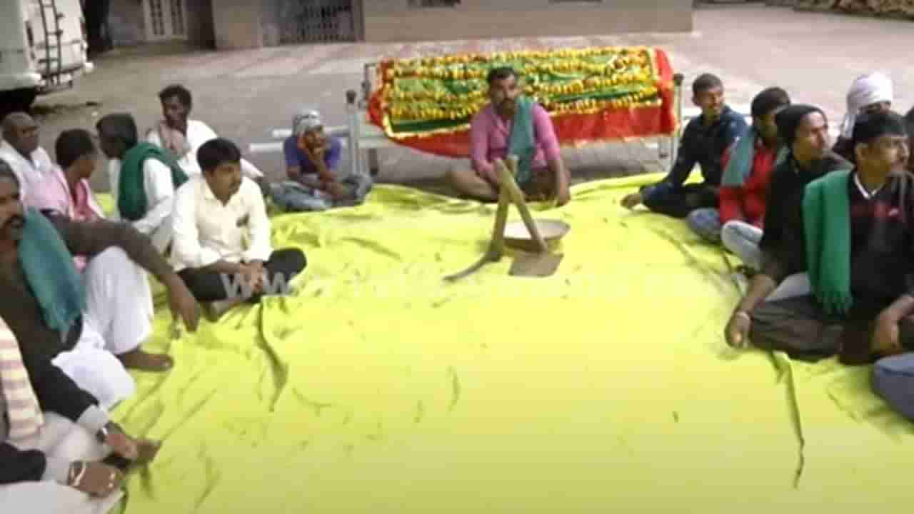 ಬೆಳಗಾವಿ: ಸ್ಮಶಾನಕ್ಕೆ ಹೆಣ ಸಾಗಿಸಲು ದಾರಿಯಿಲ್ಲದ್ದಕ್ಕೆ ಏಣಗಿ ಗ್ರಾಮಸ್ಥರು ಜಿಲ್ಲಾಧಿಕಾರಿ ಕಚೇರಿ ಮುಂದೆ ಶವವಿಟ್ಟು ಪ್ರತಿಭಟಿಸಿದರು