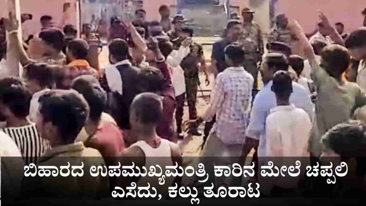 ಬಿಹಾರದ ಉಪಮುಖ್ಯಮಂತ್ರಿ ಕಾರಿನ ಮೇಲೆ ಚಪ್ಪಲಿ ಎಸೆದು, ಕಲ್ಲು ತೂರಾಟ