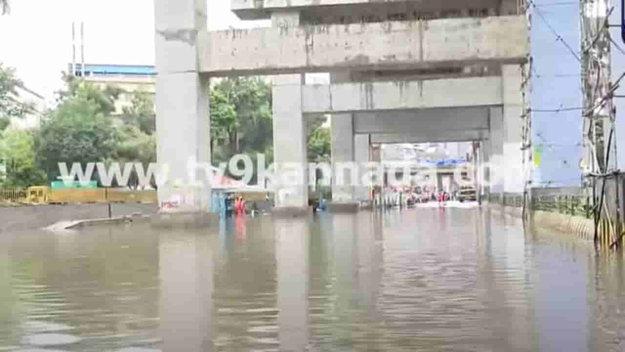 ಸಿಲ್ಕ್ ಬೋರ್ಡ್ ಮೆಟ್ರೋ ಸ್ಟೇಶನ್ ಬಳಿಯ ರಸ್ತೆ ಇನ್ನೂ ಜಲಾವೃತ, ನೀರು ರಾಜಾಕಾಲುವೆಗೆ ಹರಿಸಲು ಹರಸಾಹಸ