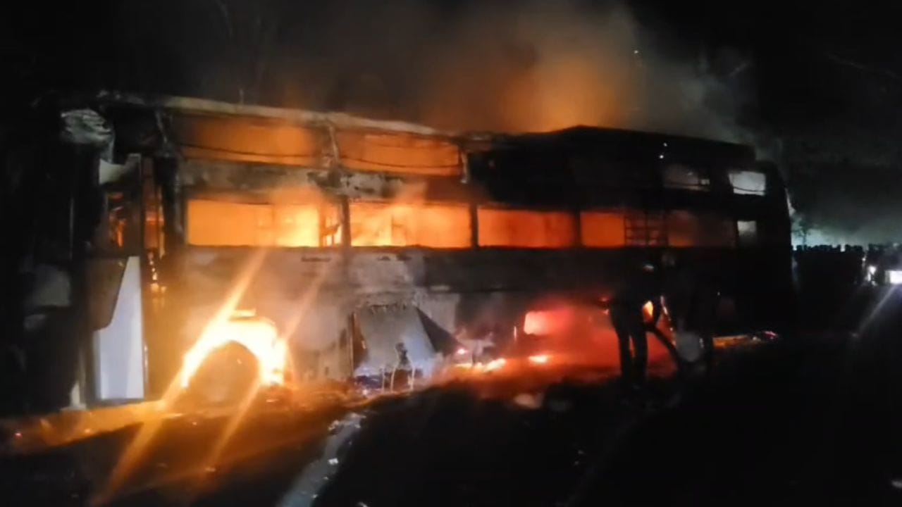 ರಾಜ್ಯದಲ್ಲಿ ಮತ್ತೊಂದು ದುರಂತ: ನಡುರಸ್ತೆಯಲ್ಲೇ ಹೊತ್ತಿ ಉರಿದ ಖಾಸಗಿ ಸ್ಲೀಪರ್ ಬಸ್